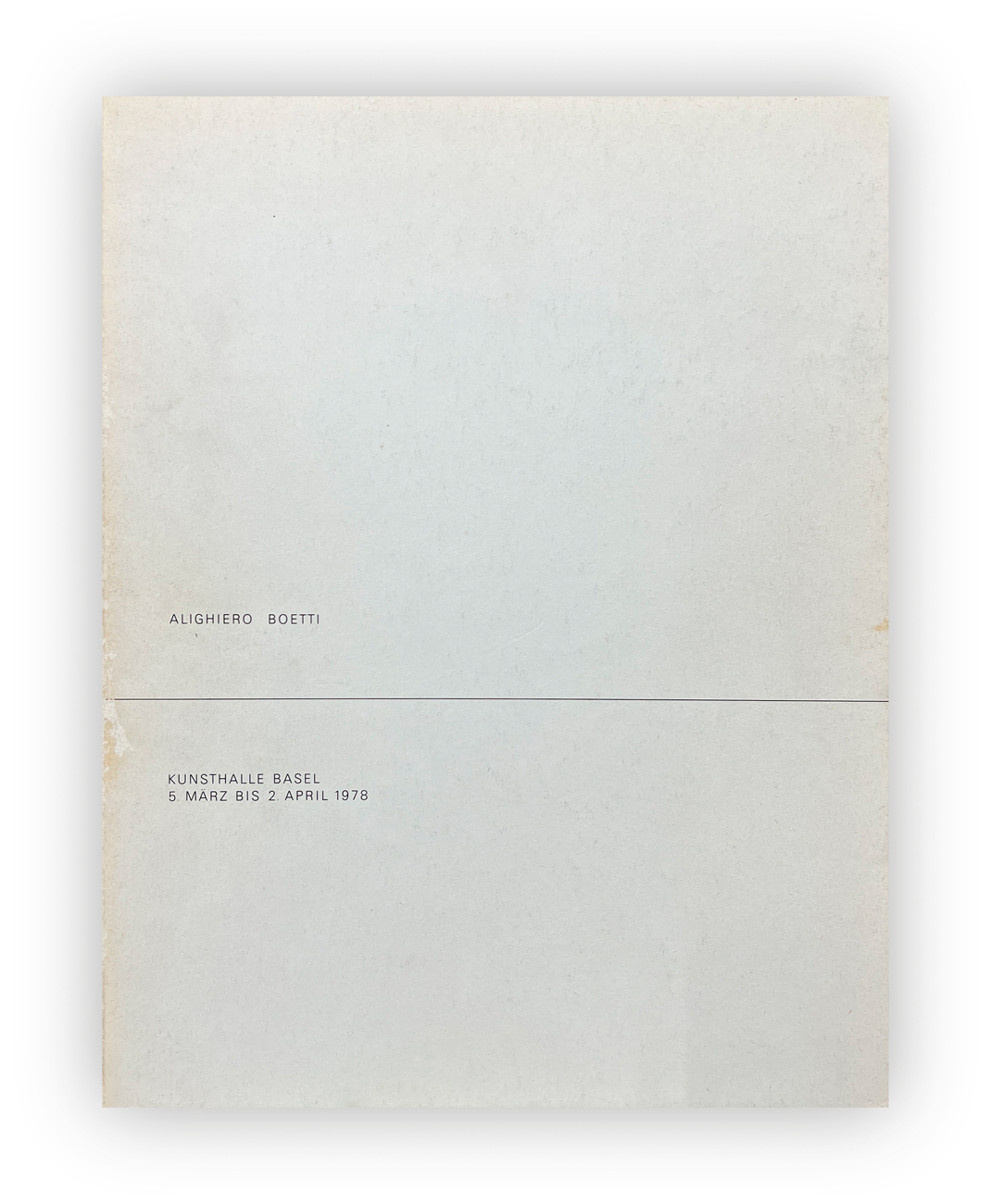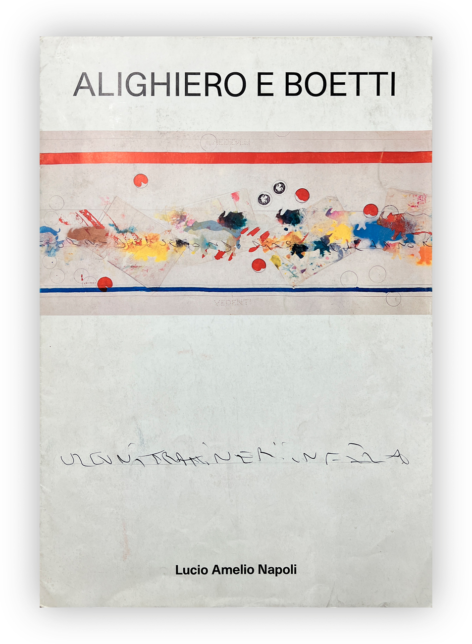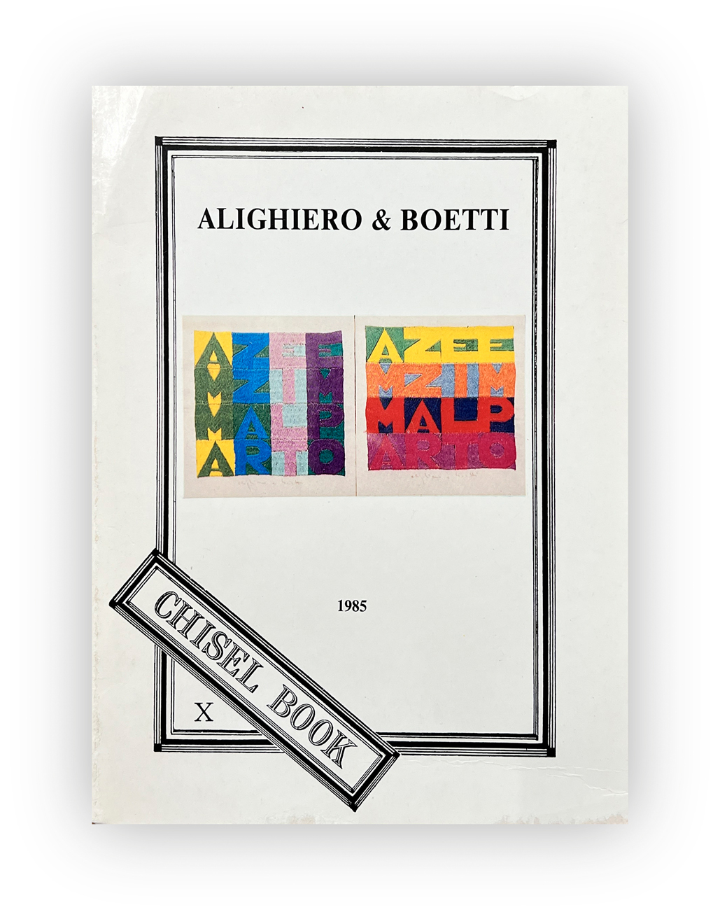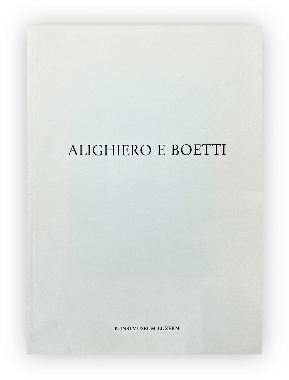 'Questo volume raccoglie l'intero itinerario di Alighiero Boetti, i suoi lavori, le sue idee, i suoi interventi, risultato di 17 anni di attività. Dalla metà degli anni sessanta, nel clima torinese dell'arte povera, attraverso l'elaborazione del suo personalissimoconcettualismo, fino all'attuale analisi delle immagini correnti..'