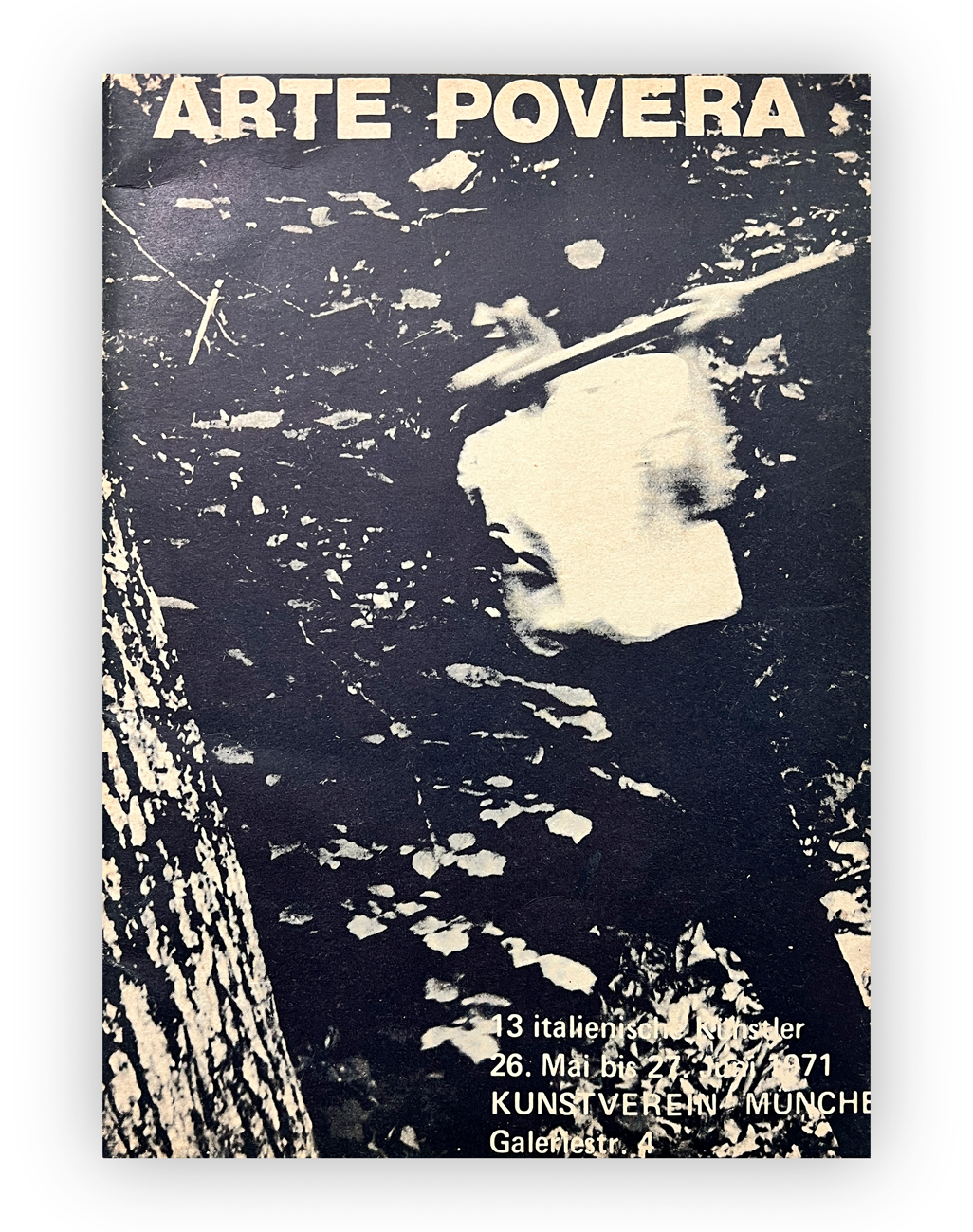 Catalogo riccamente illustrato edito in occasione dell'esposizione tenutasi presso Kunstverein, Monaco, 1971 (opere di Anselmo, Boetti, De Dominicis, Fabro, Kounellis, Merz, Paolini, Penone, Pisani, Pistoletto, Prini, Salvo e Zorio
