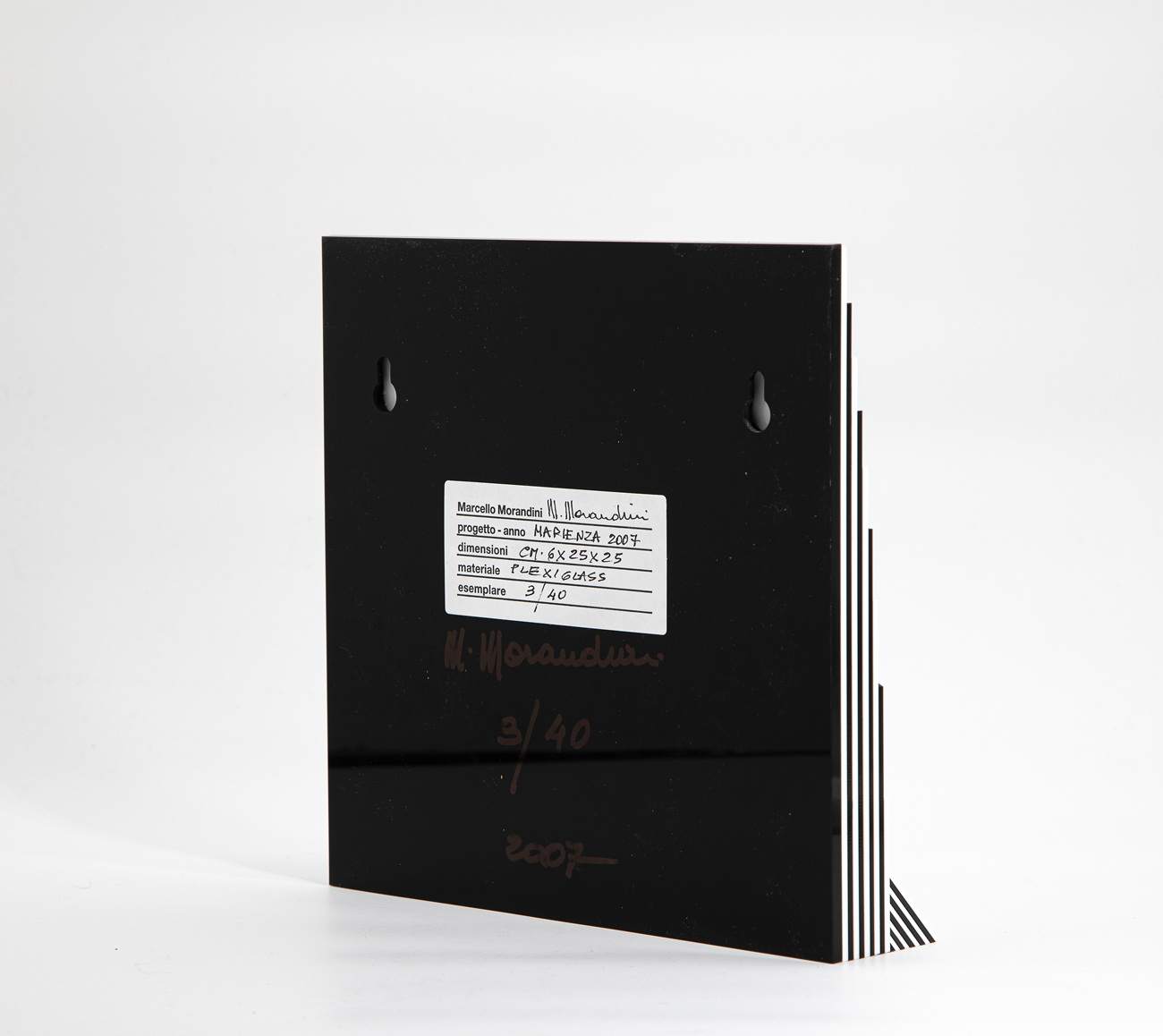 Etichetta dell'Artista con firma, titolo, datazione, misure, tecnica e numerazione (Esemplare 3/40) al retro