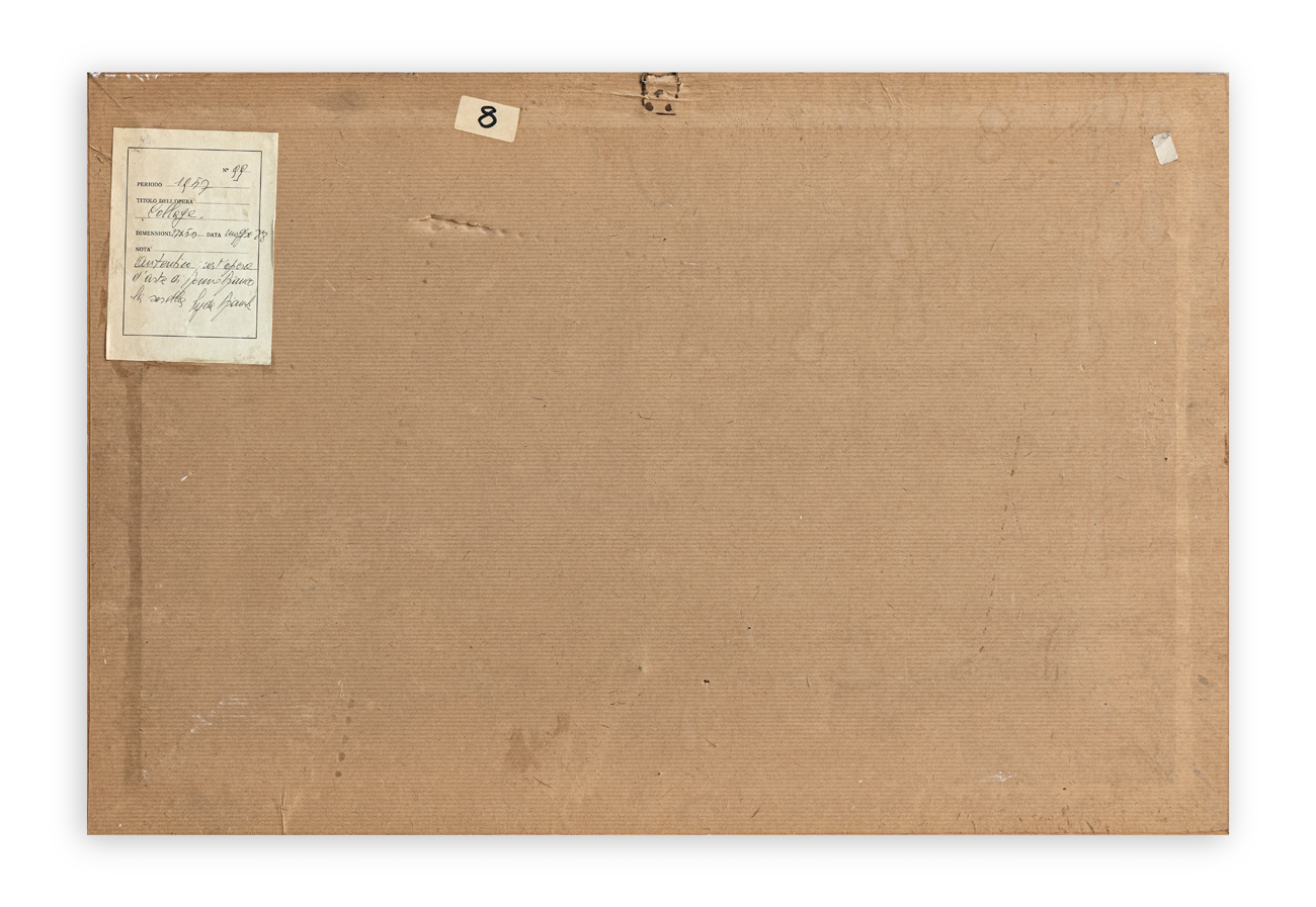 Dichiarazione di Autenticità a cura di Lydia Bianchi su cartiglio applicato al retro della tavola protettiva