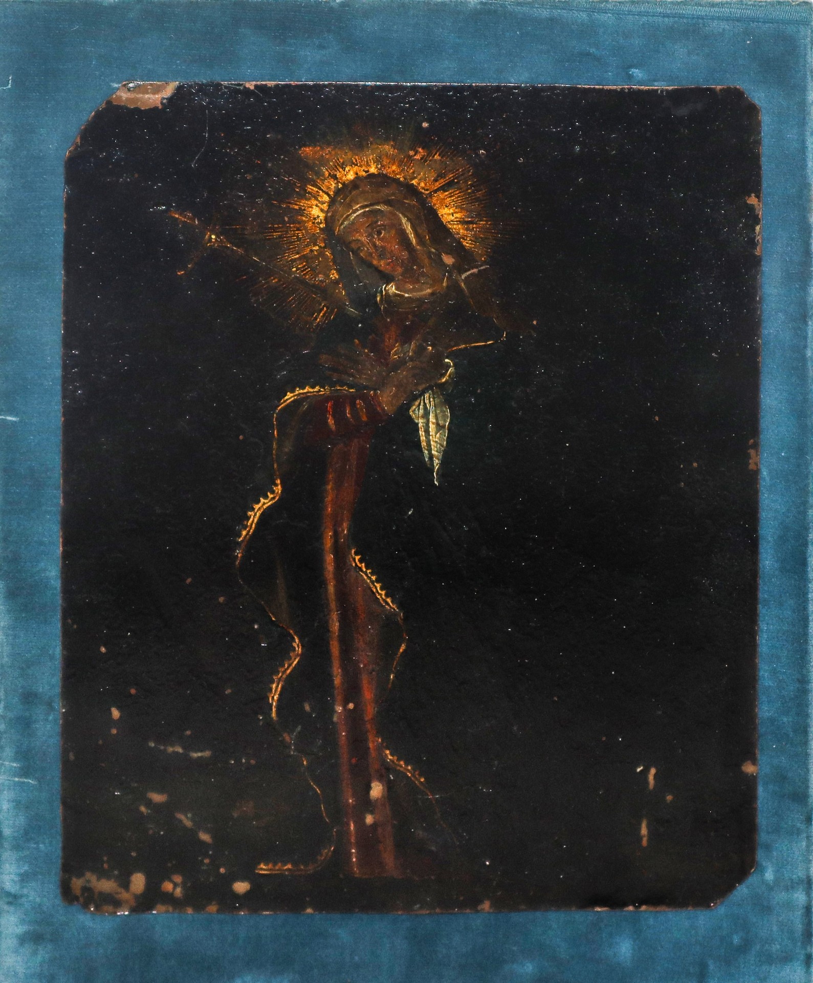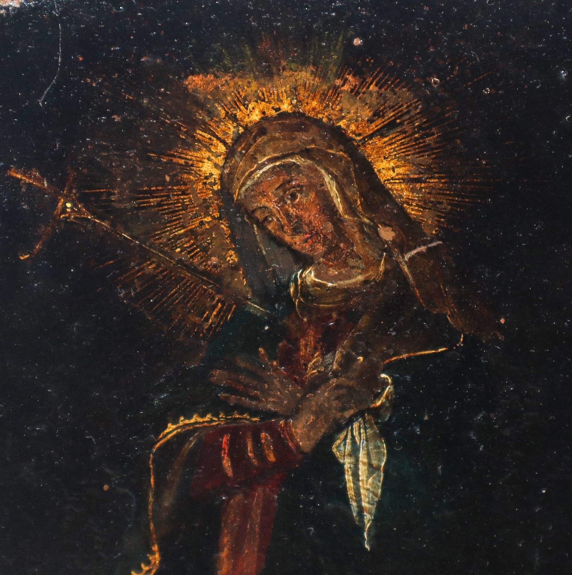 Madonna addolorata, primi 17° secolo H cm 19.3x15 Olio su rame Pittore del XVII secolo. Sprovvista di cornice
