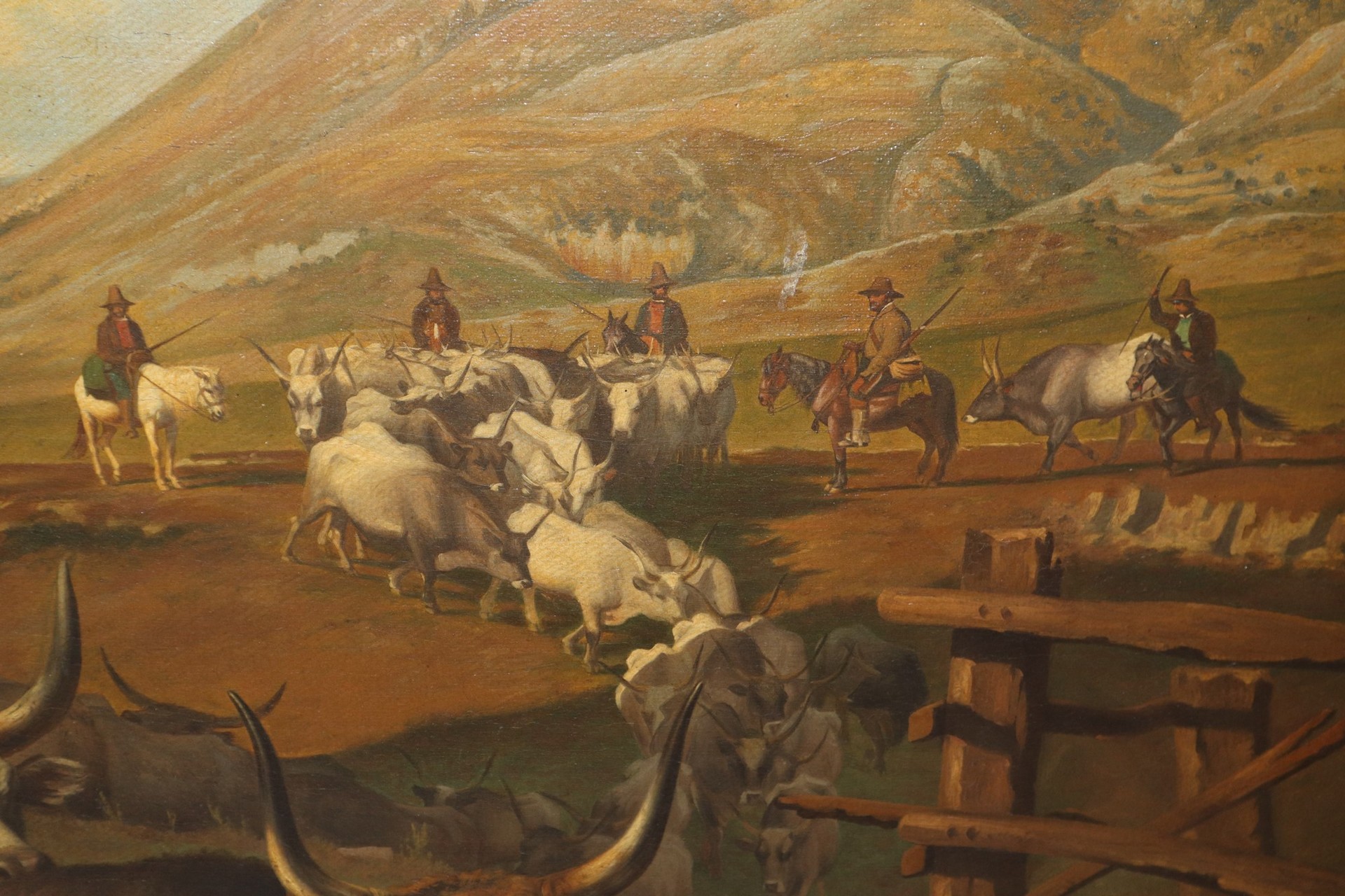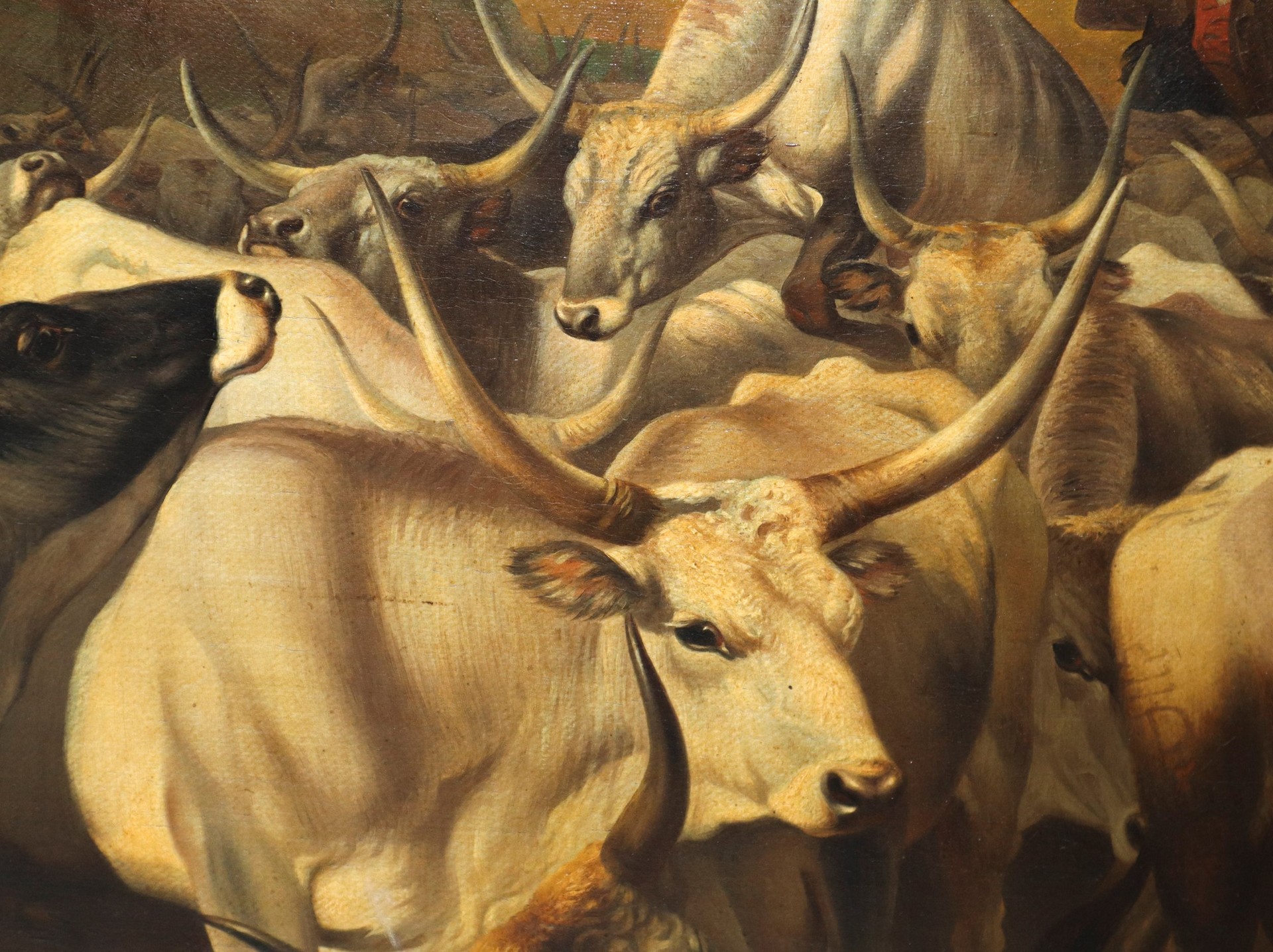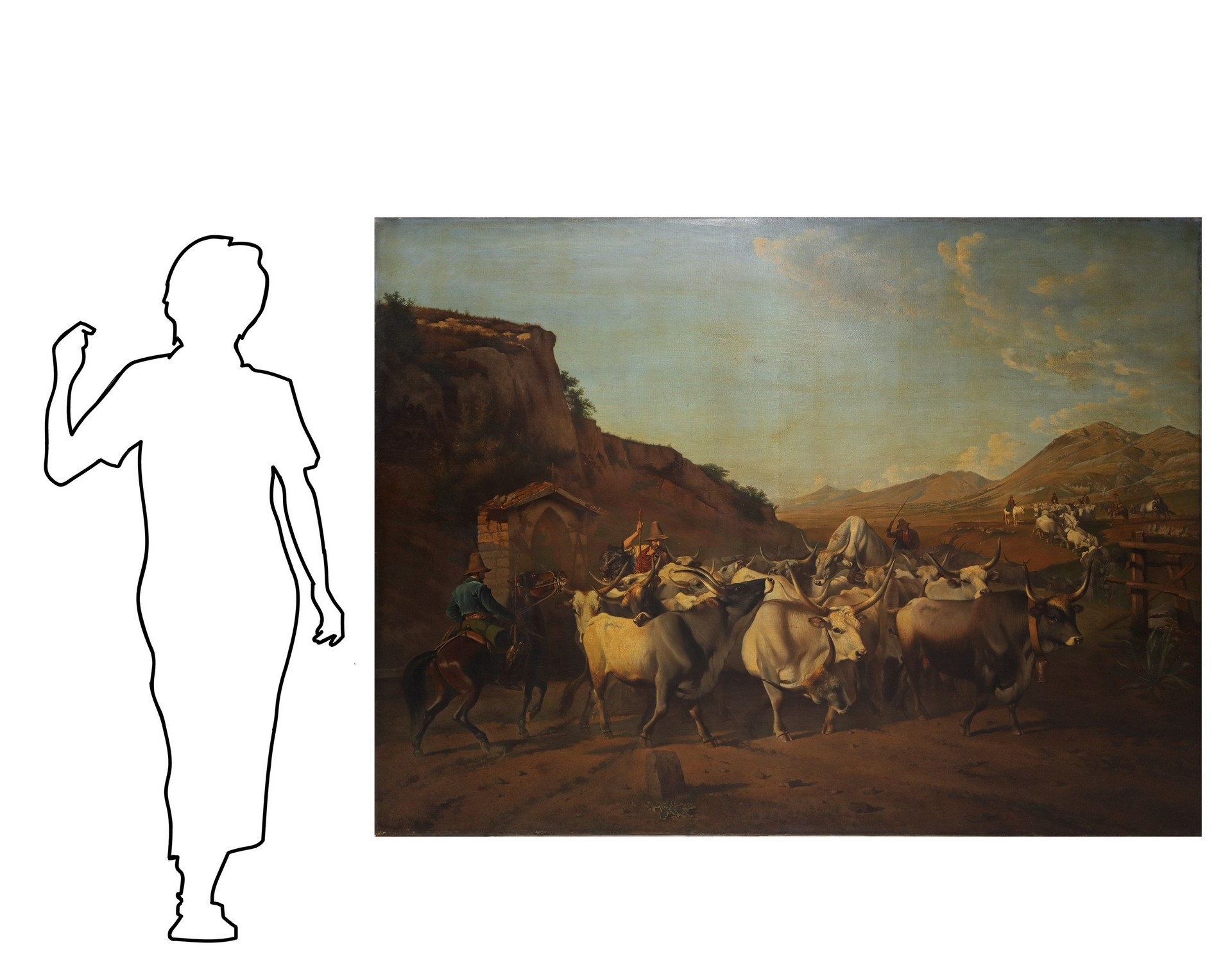 Charles Coumont (Belgio 1822-Belgio 1889) - Paesaggio con mandriani romani e buoi, nineteen° secolo h cm 150 x 197 Dipinto ad olio su tela