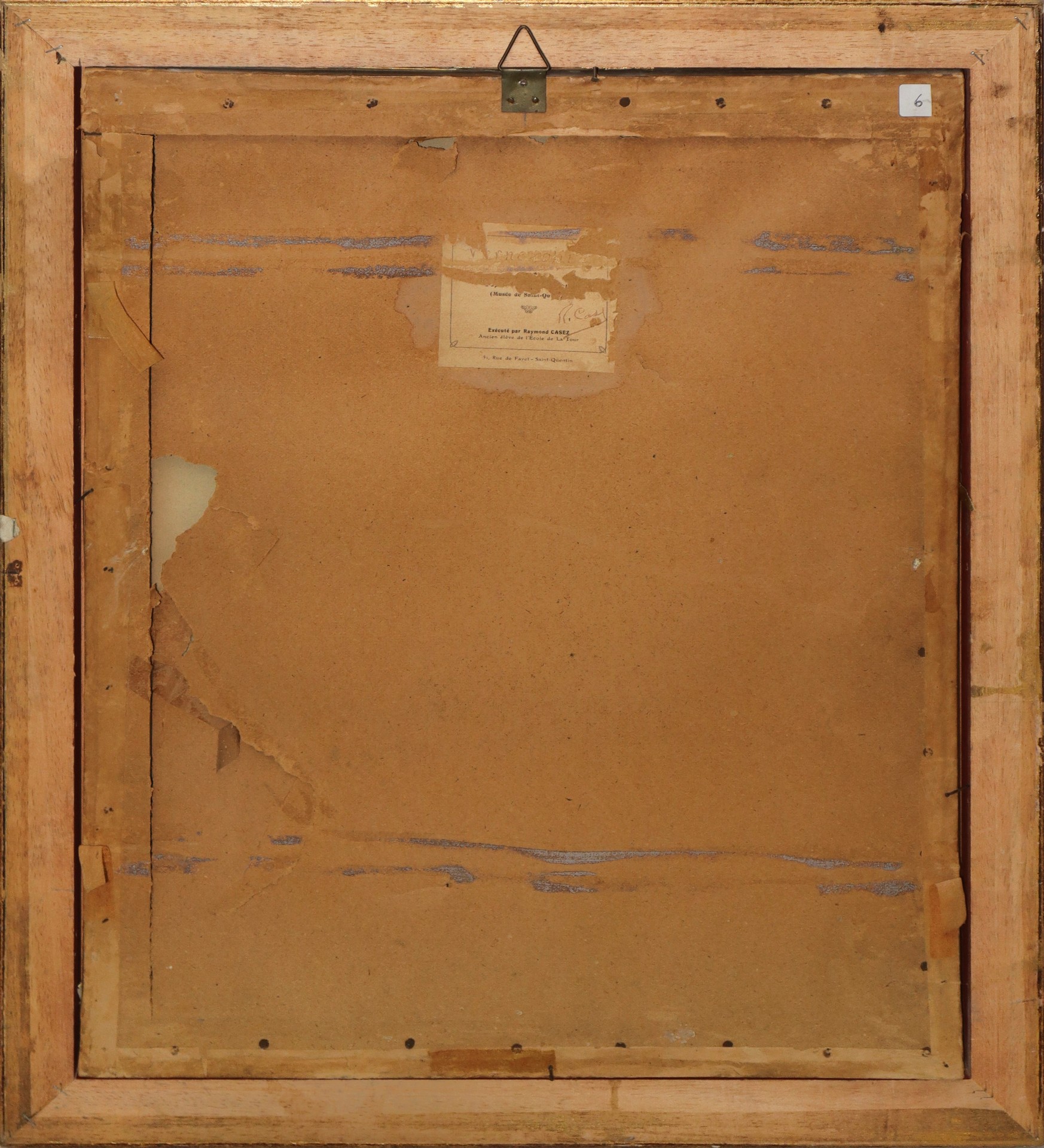 Nobiluomo con cappello rosso e manto in velluto blu, France, 19° secolo H cm 54x40 - in cornice H cm 69x57 Tempera su cartone