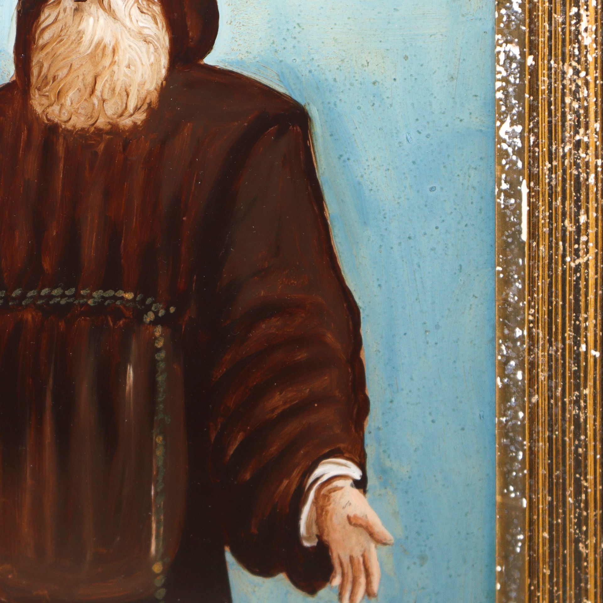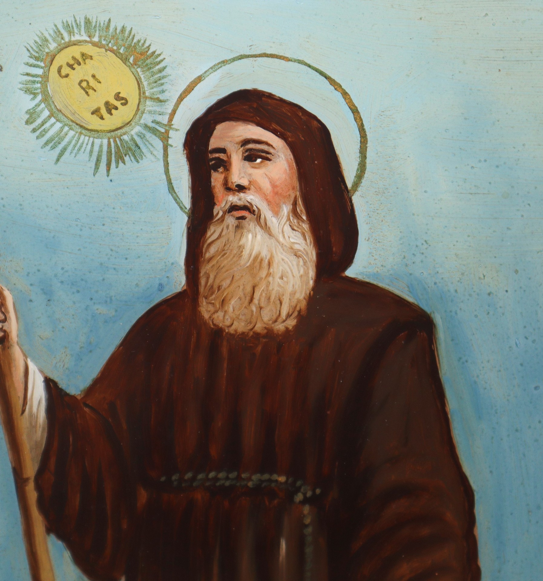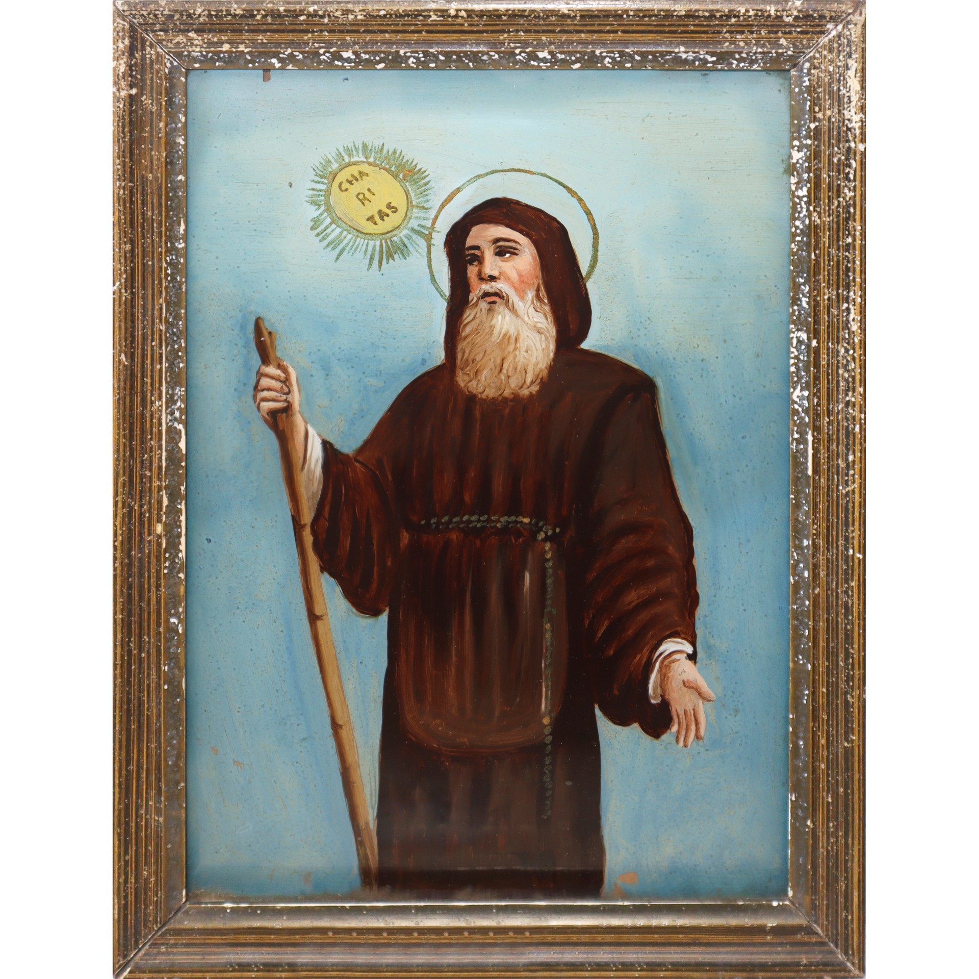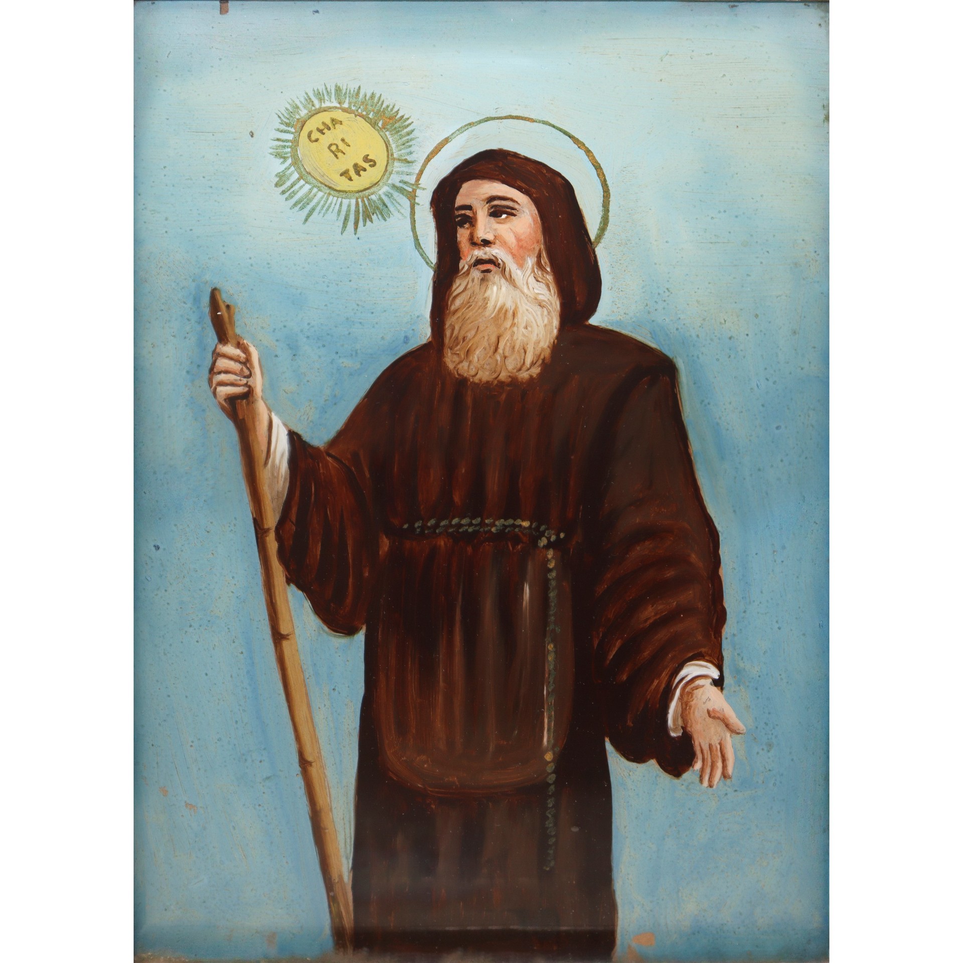 San Francesco di Paola, fine 19° secolo H cm 37x27 Pittura su vetro