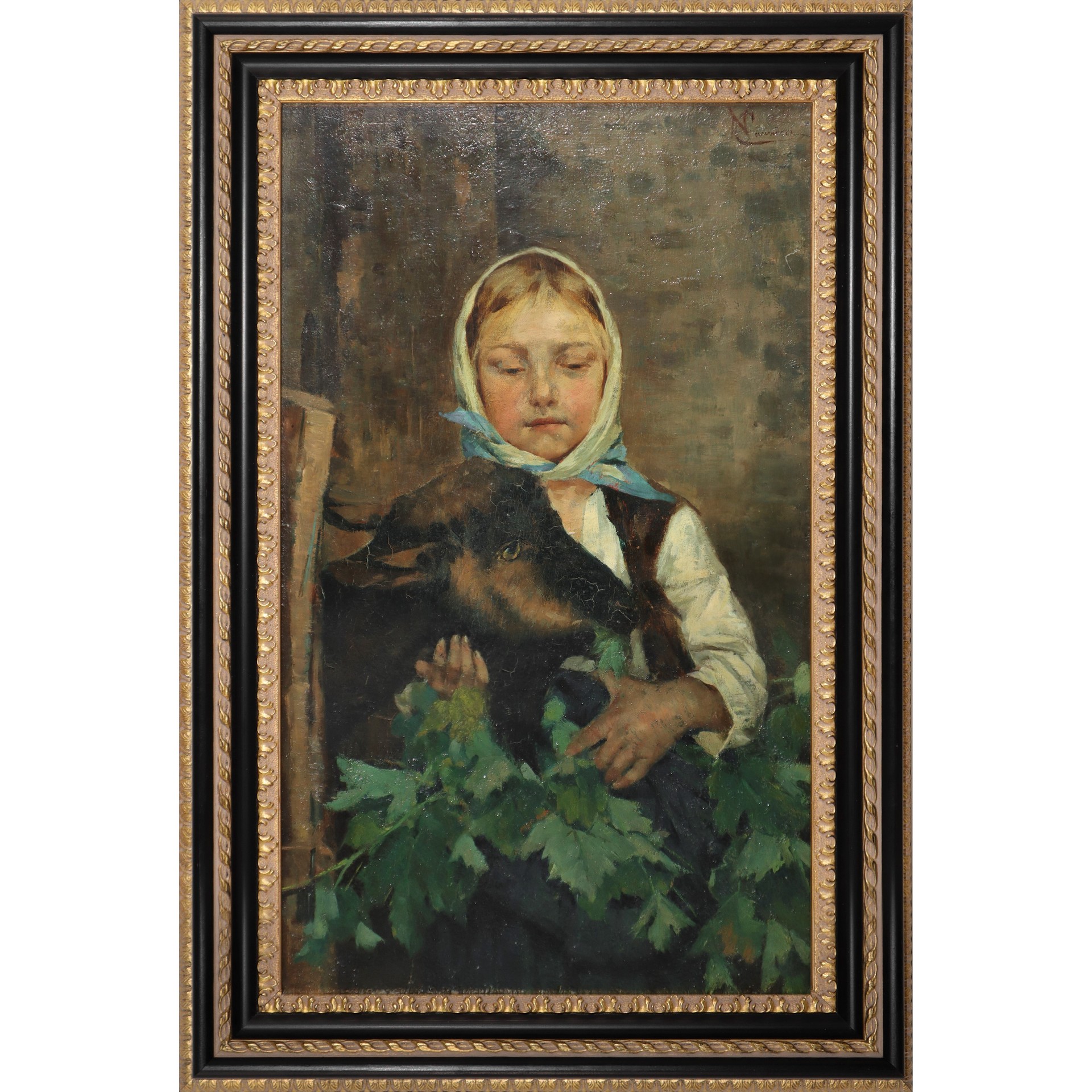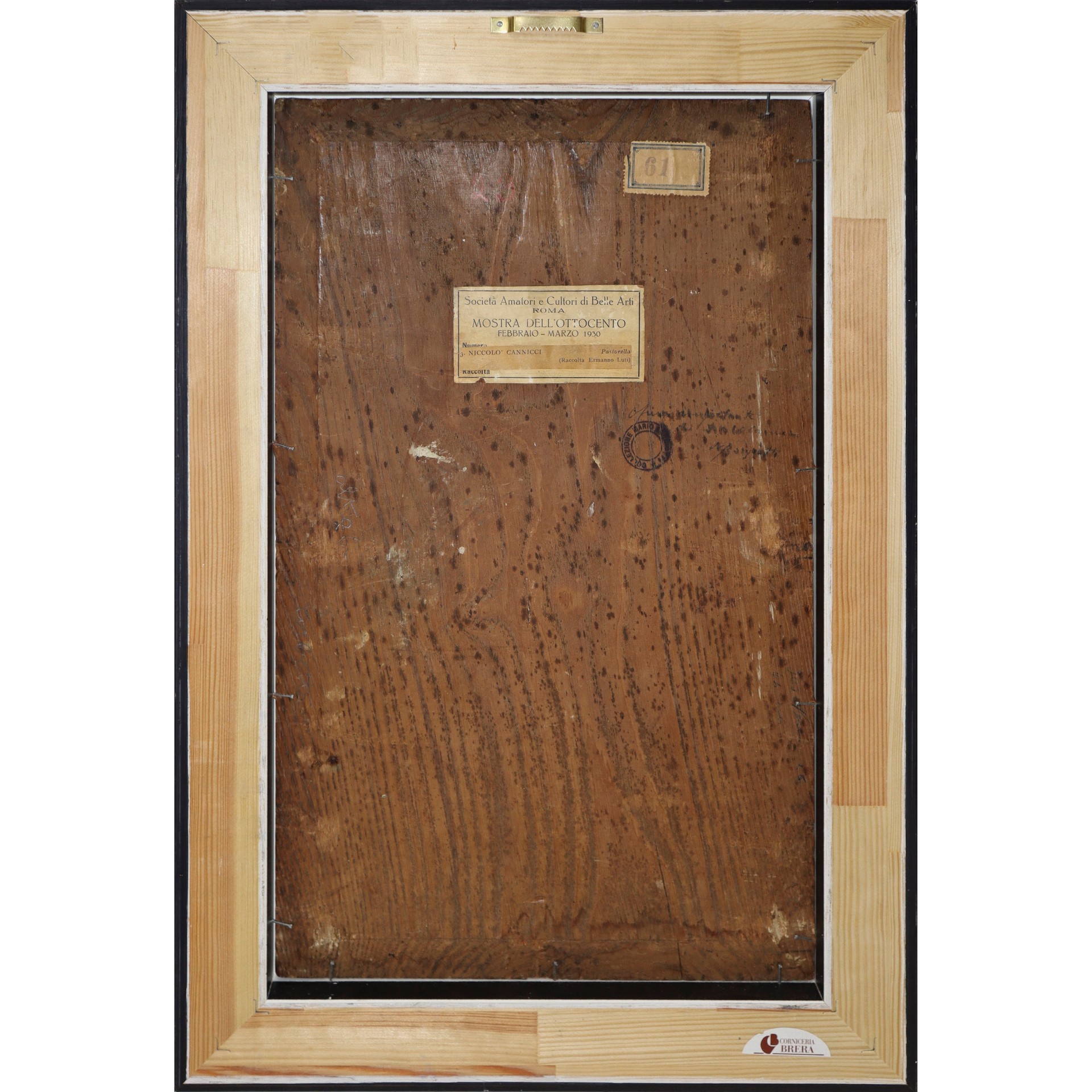 Niccolo' Cannicci (29/10/1846-Firenze 19/01/1906) - Pastorella cm 47x28 in cornice cm 57x38 Olio su tavola Firmato in alto a destra. Sul retro etichetta Società Amatori e Cultori di Belle Art di Roma, Mostra dell'800- Febbraio -Marzo 1930. Già appartenente alla prestigiosa collezione di Ermanno Luti (Firenze).