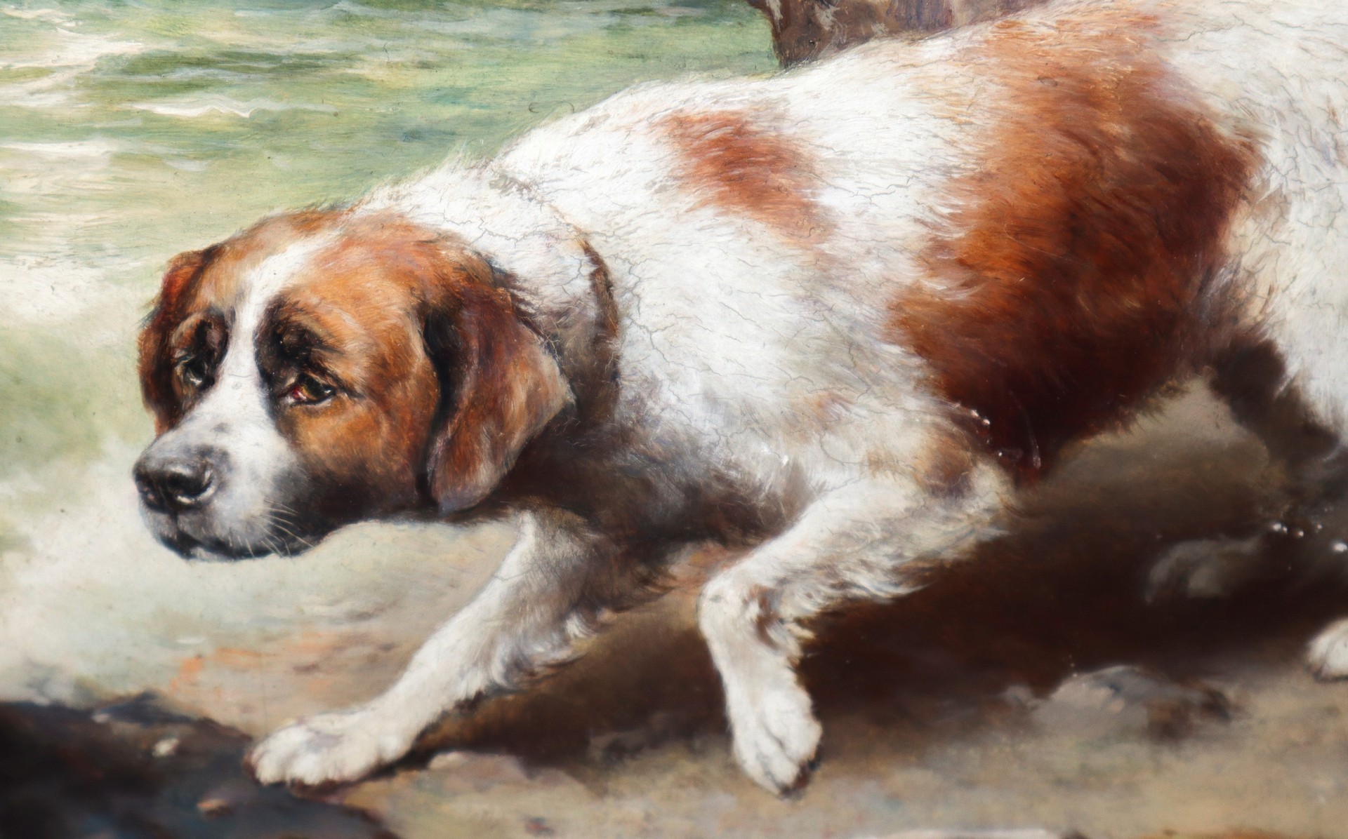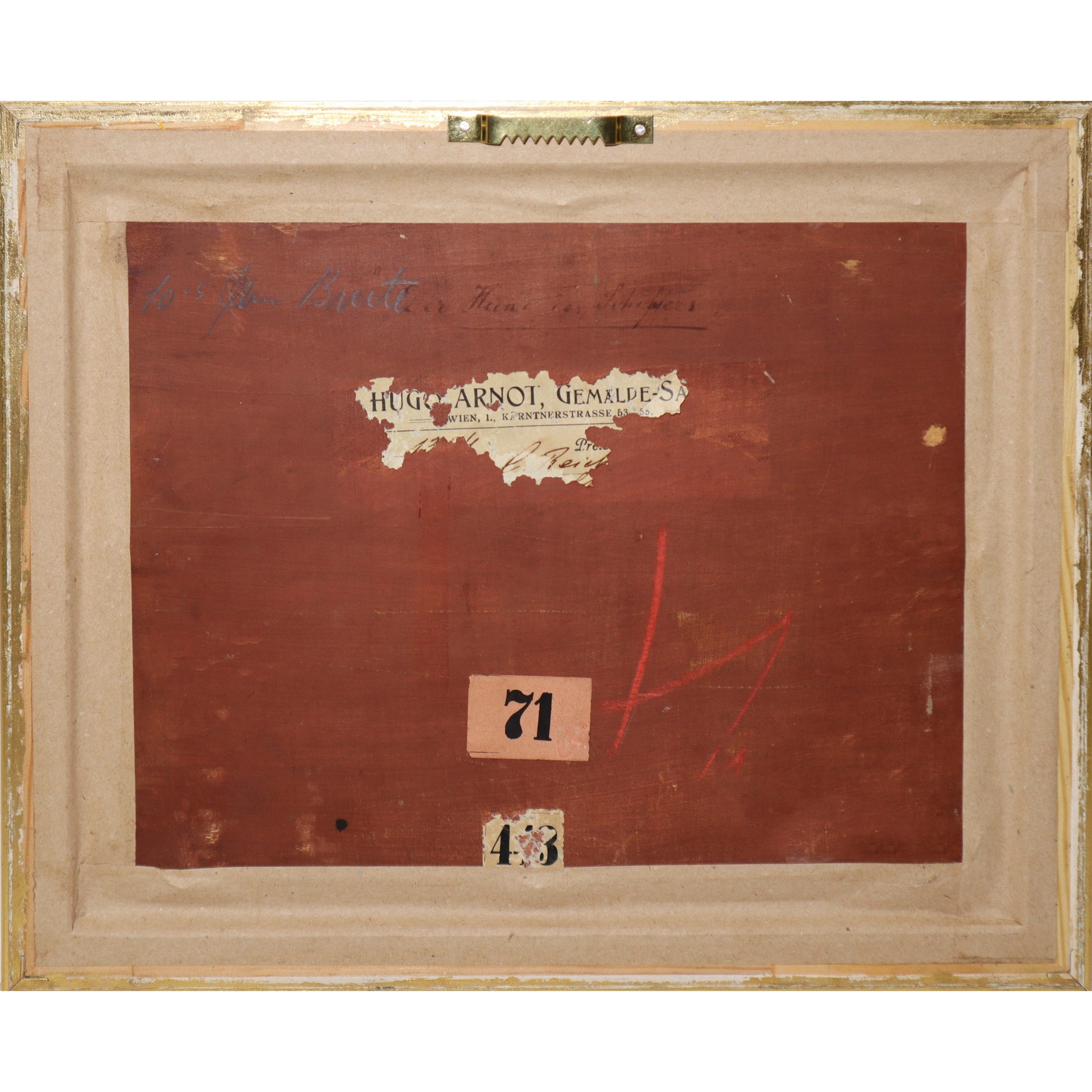 Carl Reichert (Vienna 27/08/1836-Graz 05/04/1918) - San Bernardo sulla riva del mare H cm 21x26 Olio su tavola Firma in basso a destra. Al retro etichetta parzialmente visibile "Hugo Arnot Gemalde Sa [...]". In bella cornice dorata.