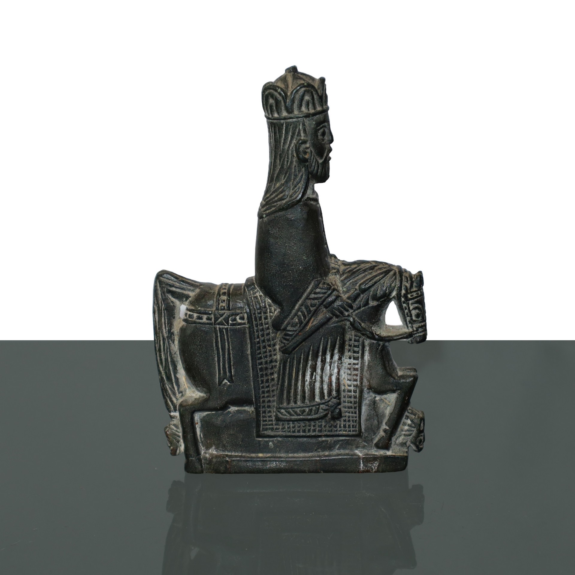 Re a cavallo, sigillo medievale in ossidiana scolpito, Coptic artist 12th/14° secolo