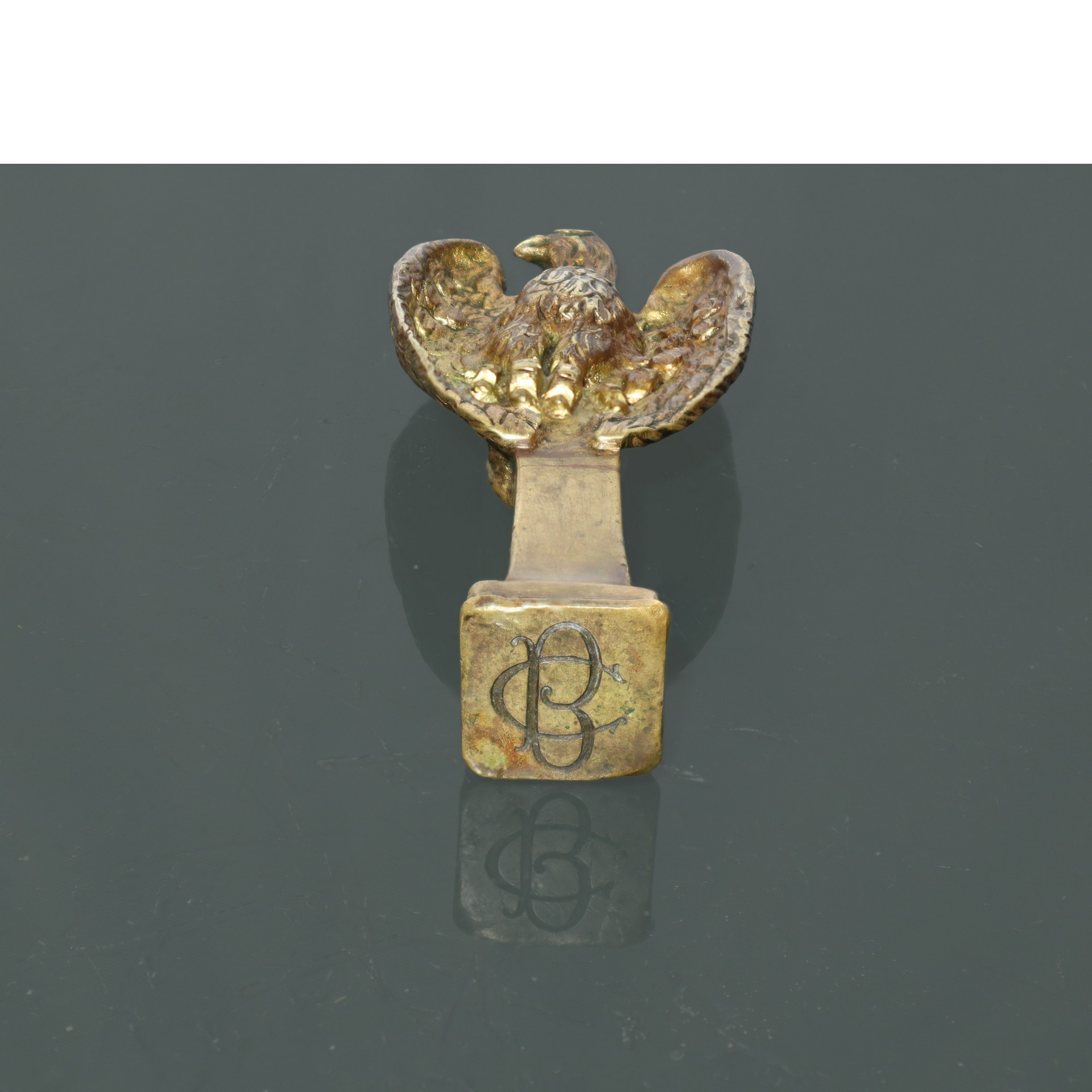 Sigillo-scultura Fascista “Aquila in bronzo dorato” , First half of the 20° secolo H cm 10.5 Iniziali C.B.Iniziali C.B.