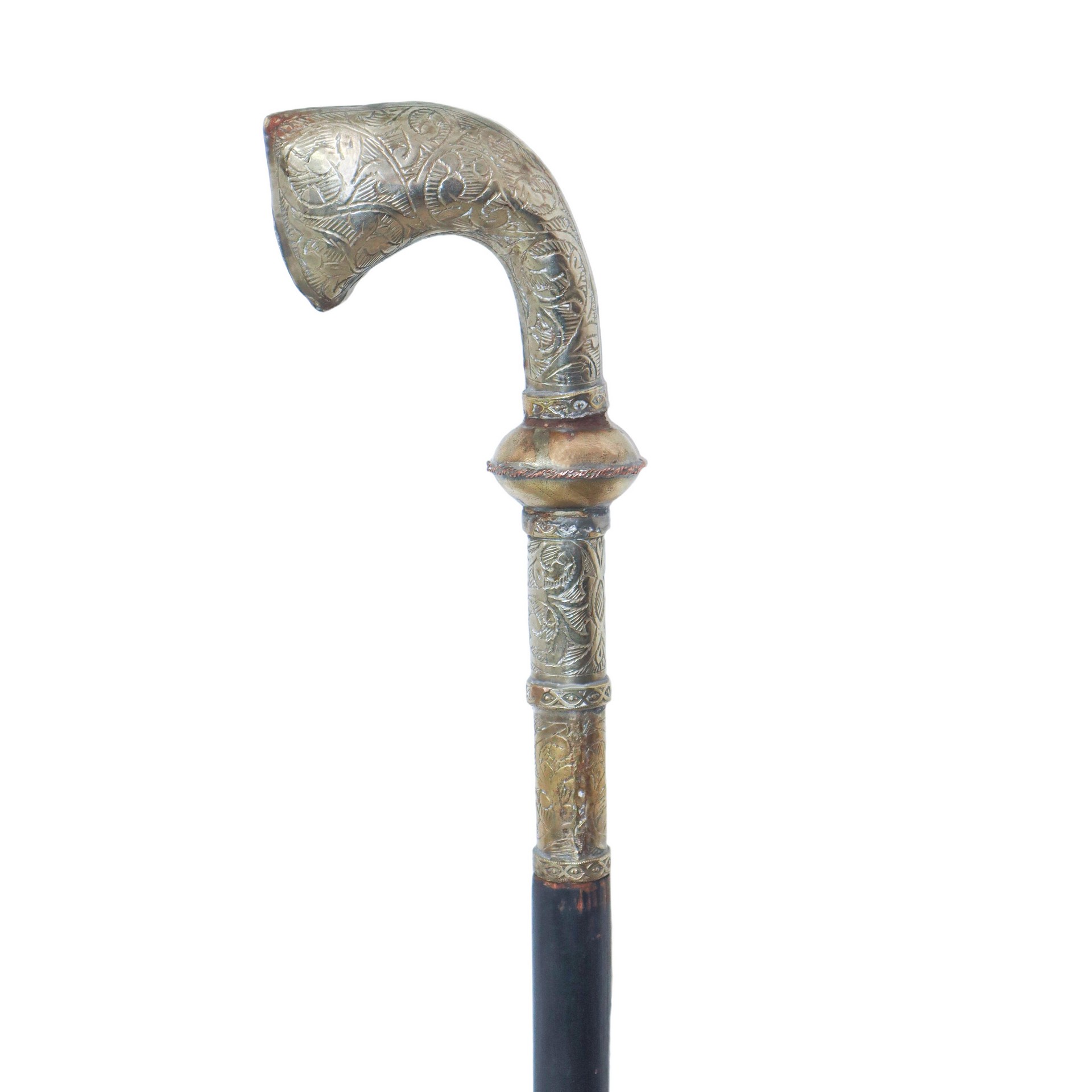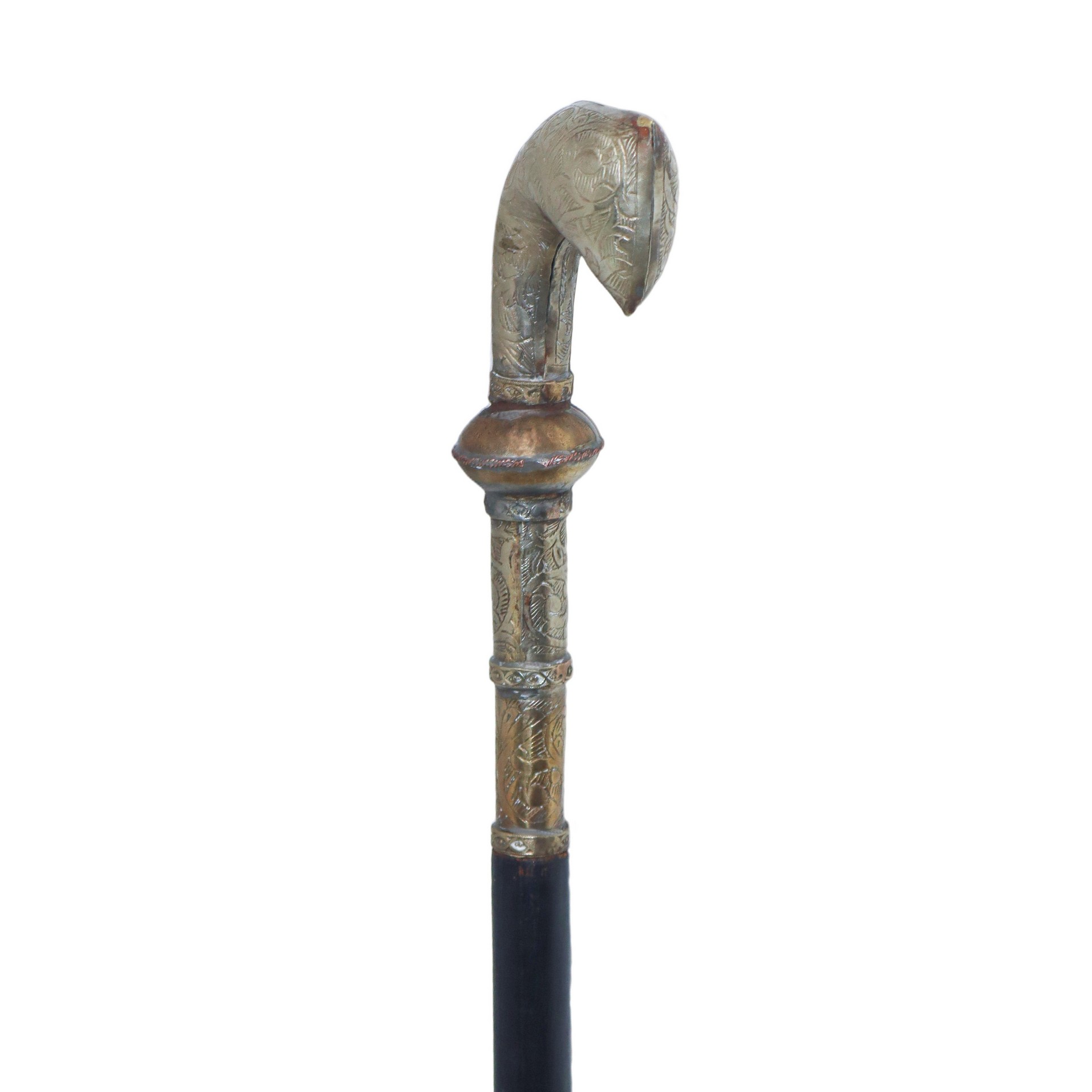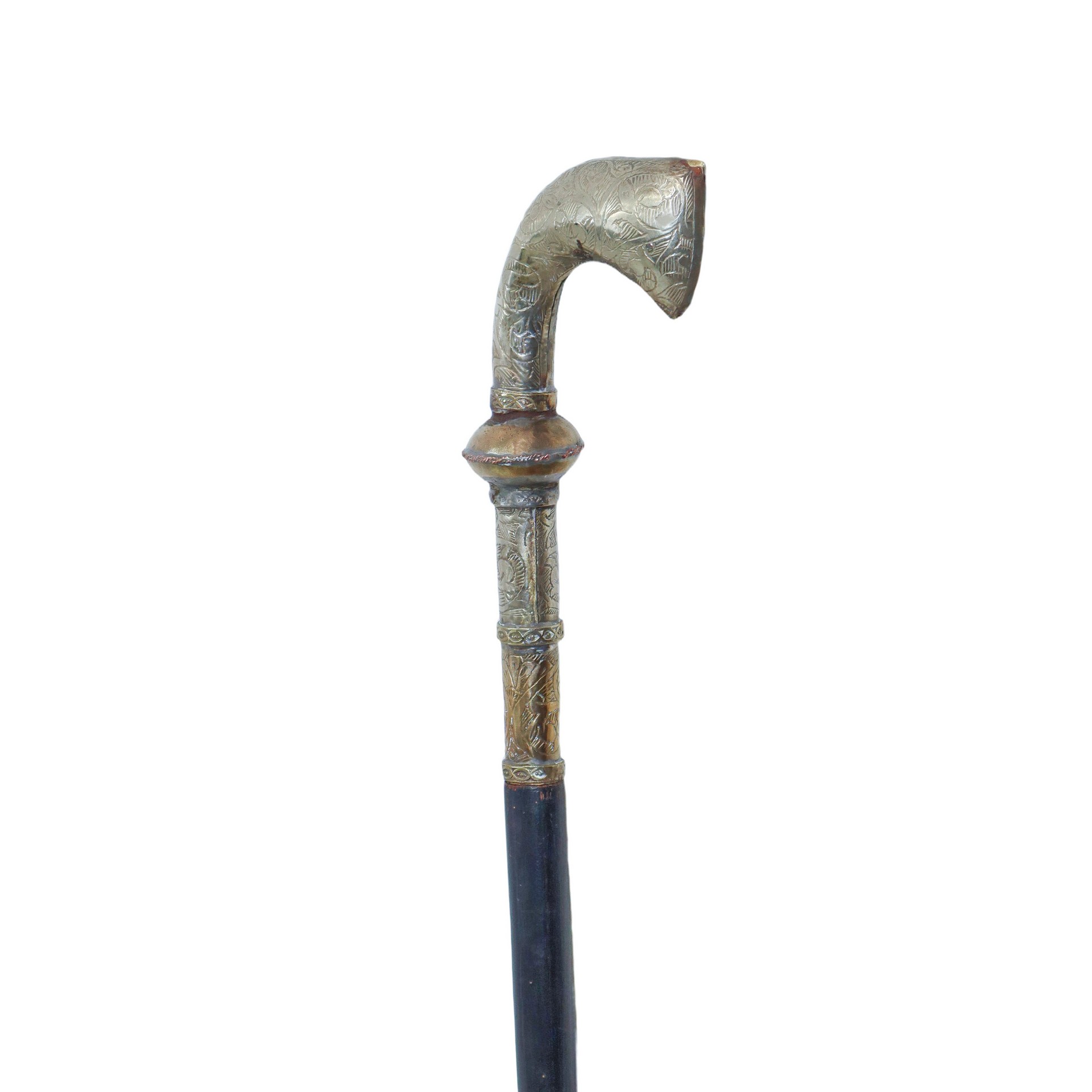 Bastone con impugnatura in metallo argentato a manico di pistola