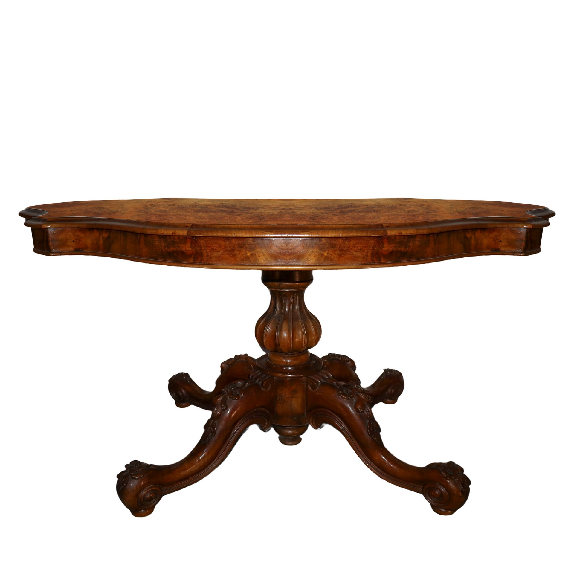 Tavolo ovale a biscotto in radica di noce con 6 sedie, nineteen° secolo