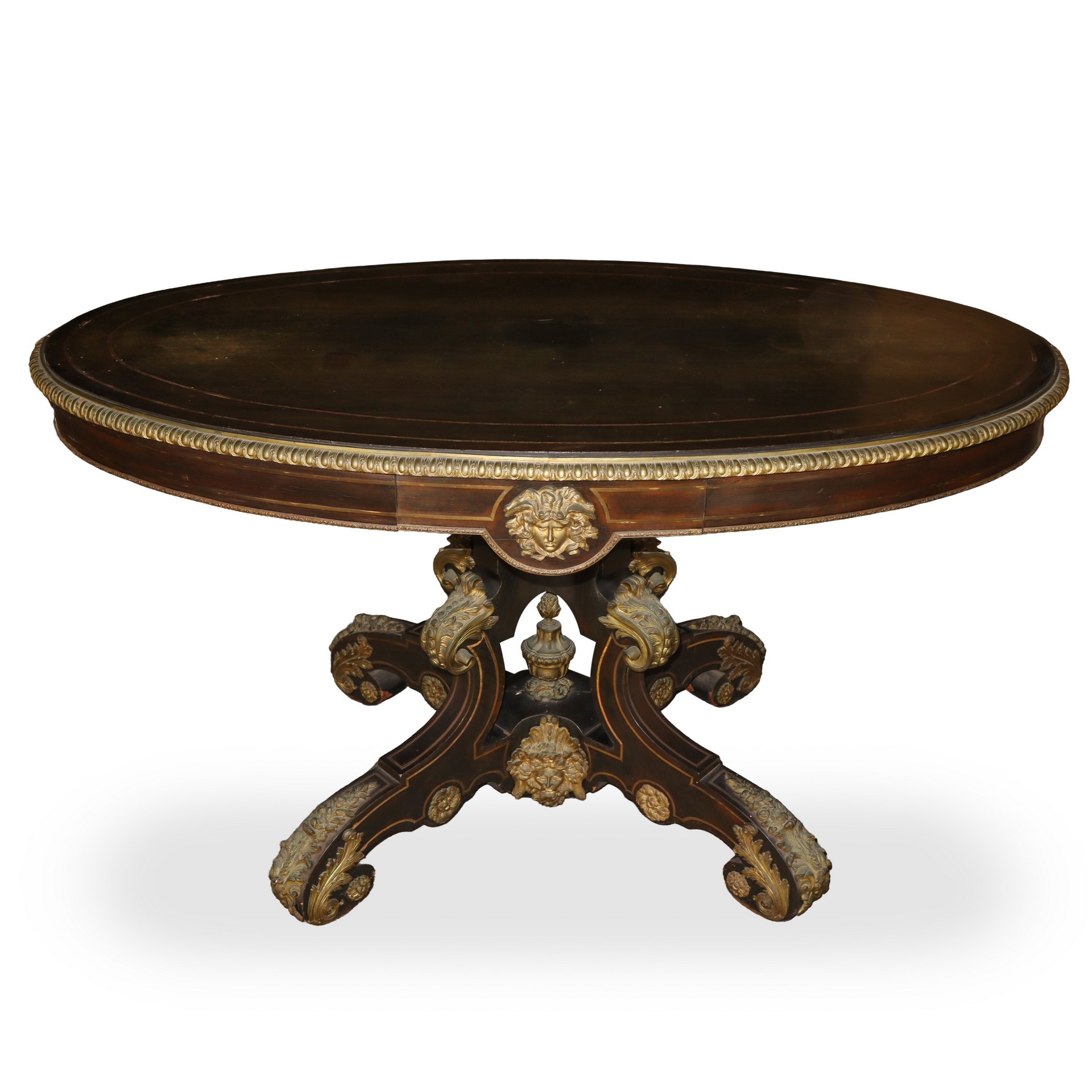 Tavolo laccato nero con filettature in ottone H cm 73x130x82 Piede a 4 razze.Piede a 4 razze.