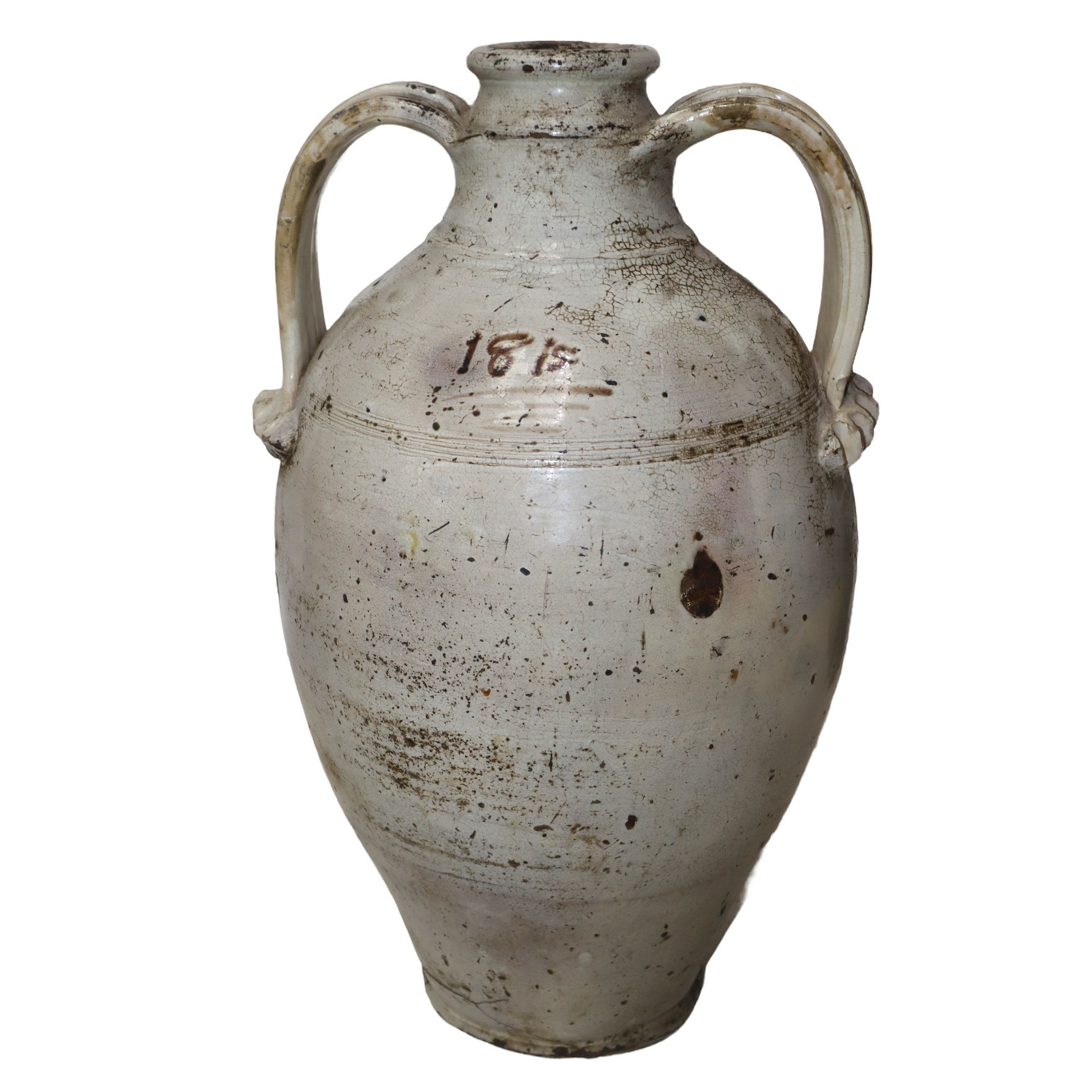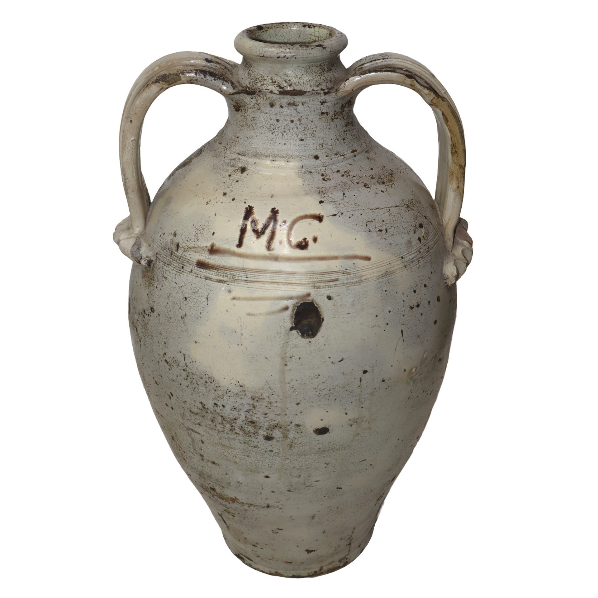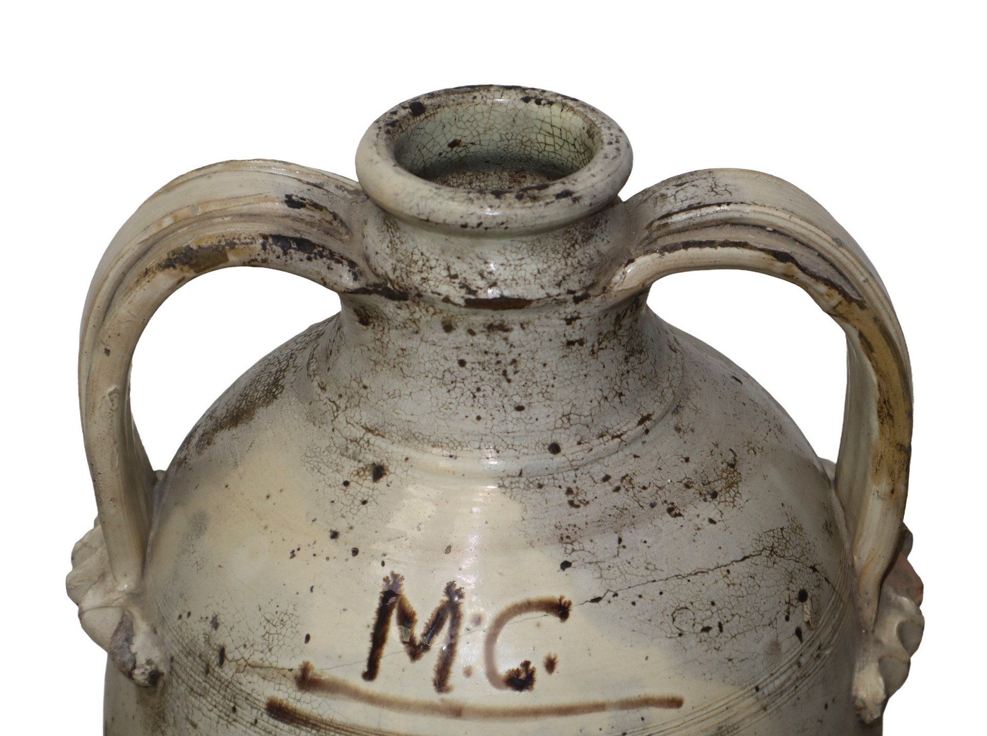 Quartara in maiolica di Catalgirone, smaltata e con manici., 1815 H cm 53 Sul fronte iniziali MC, sul retro datata 1815Sul fronte iniziali MC, sul retro datata 1815