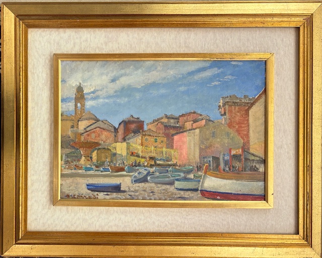 Alfonso Corradi Castelnovo di sotto (RE) 1889 - Milano 1972, Veduta di Deiva Marina Olio su tavola cm 35x50 firmato in basso a sx