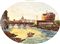 Placca in marmo nero con mosaico minuto raffigurante veduta di Roma, seconda...