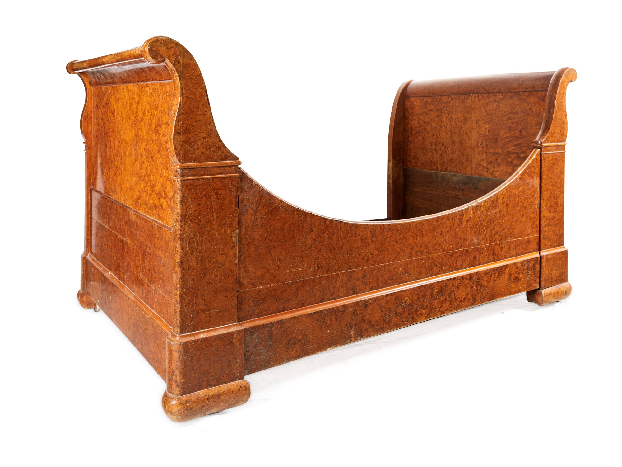Letto a barca a una piazza in radica di tuja, XIX secolo cm 112x210x111...