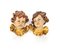 Coppia di piccole teste di cherubino in legno laccato e dorato cm 12x10