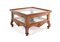 Tavolo basso a vetrina in legno cm 46x76x76 di impianto rettangolare con piano e fascia a vetri, caratterizzato da piedi incurvati rifiniti da rilievi vegetali
