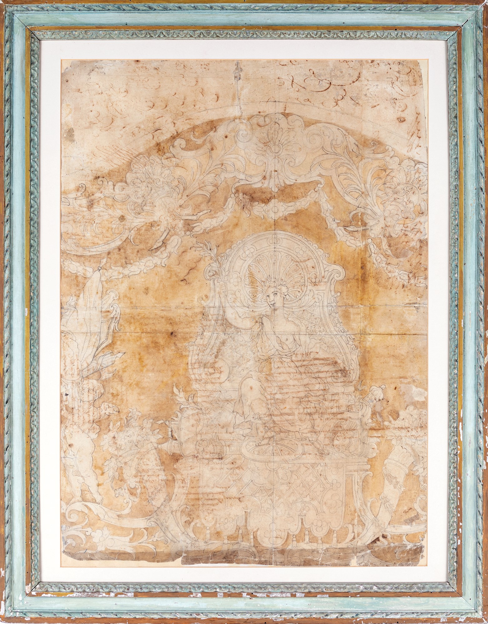 Progetto per Aubusson Lapis e inchiostro acquerellato su carta mm 715x510 - con cornice cm 87,5x69 Filigrana con Giglio di Francia (Da controllare)