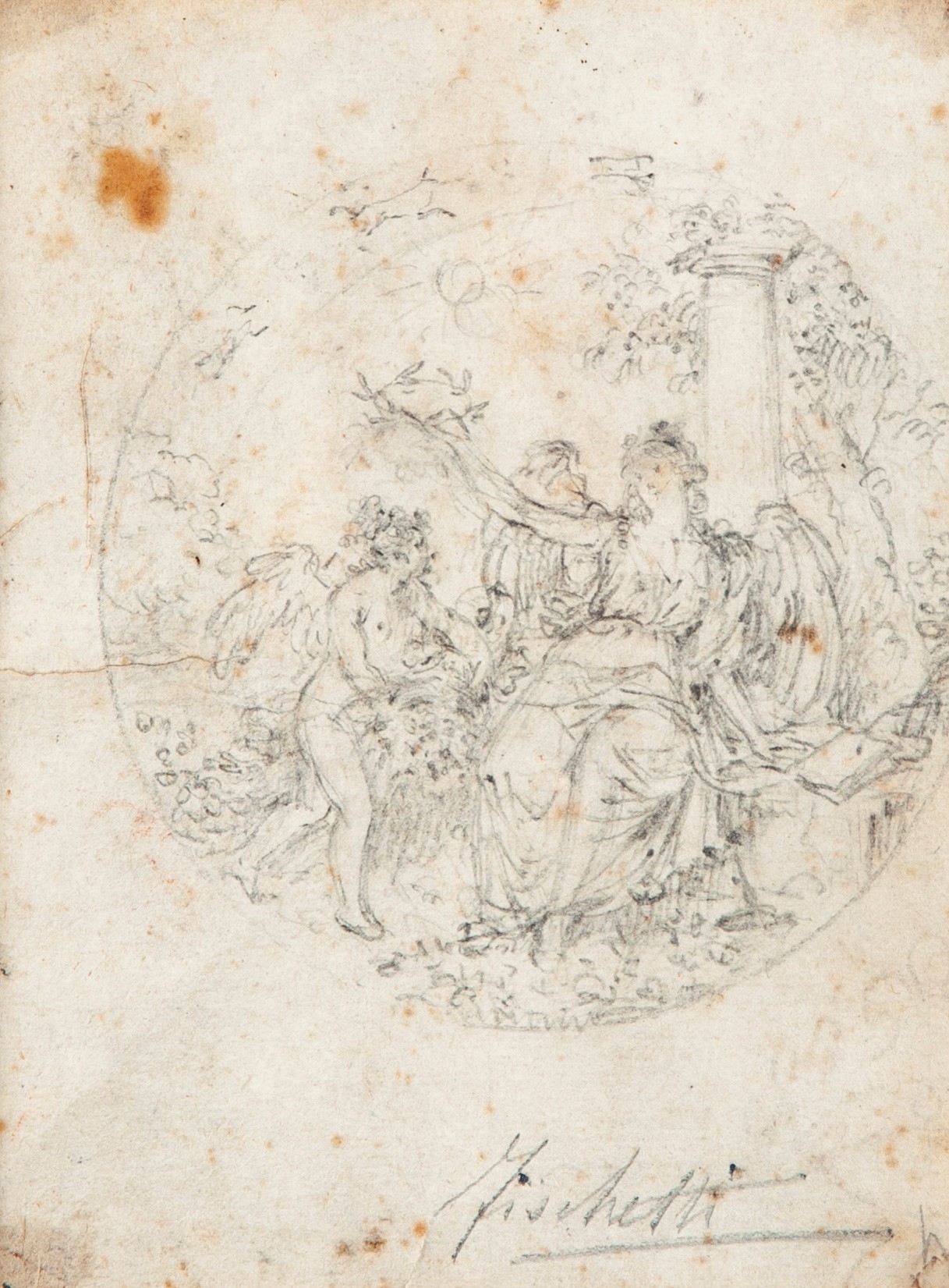 Fedele Fischetti (Napoli 1732-Napoli 1792) Musa incorona Amore Matita su...