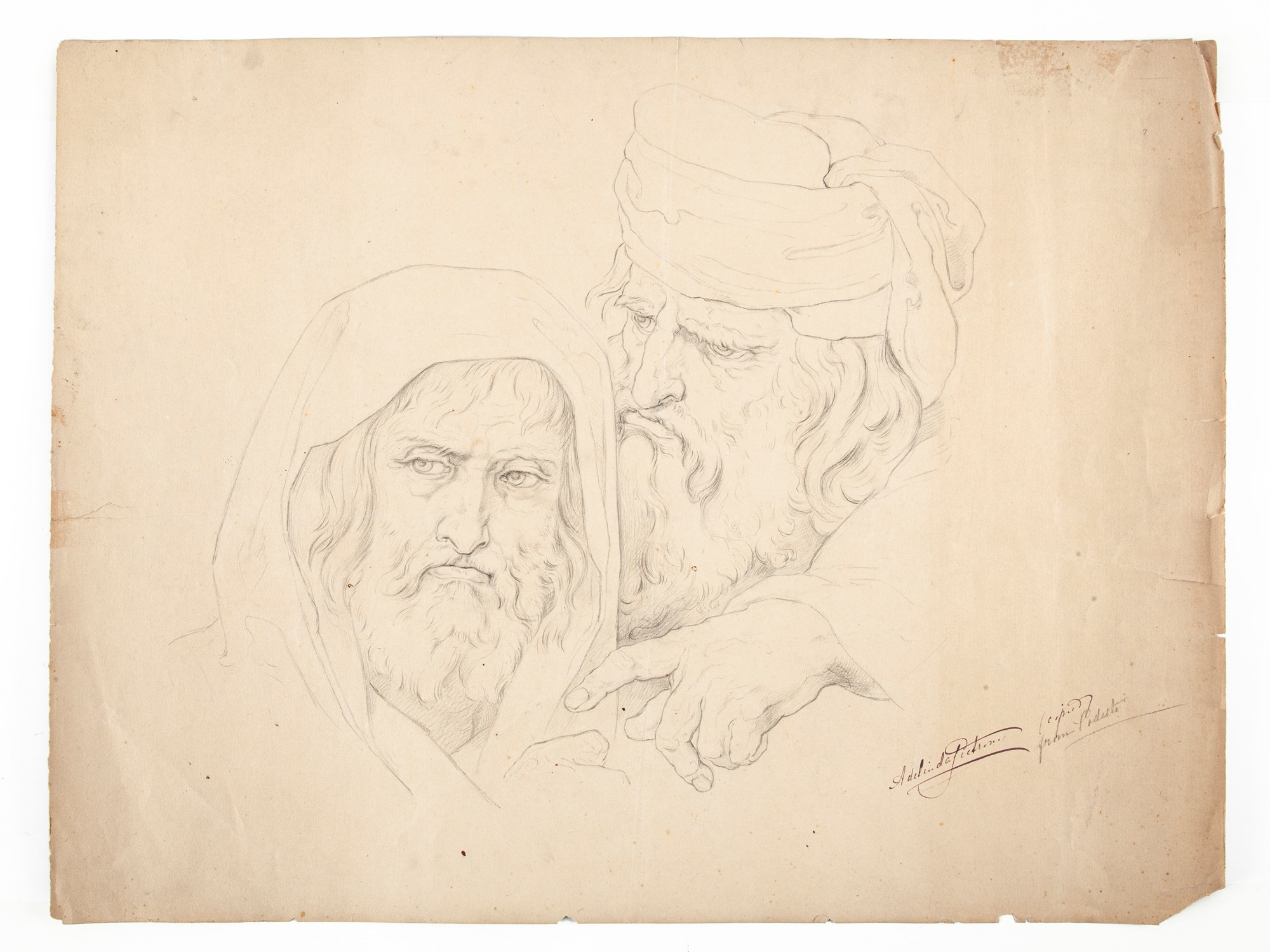 Scuola Italiana del XIX secolo () Teste di uomini matita su carta mm 480x620...
