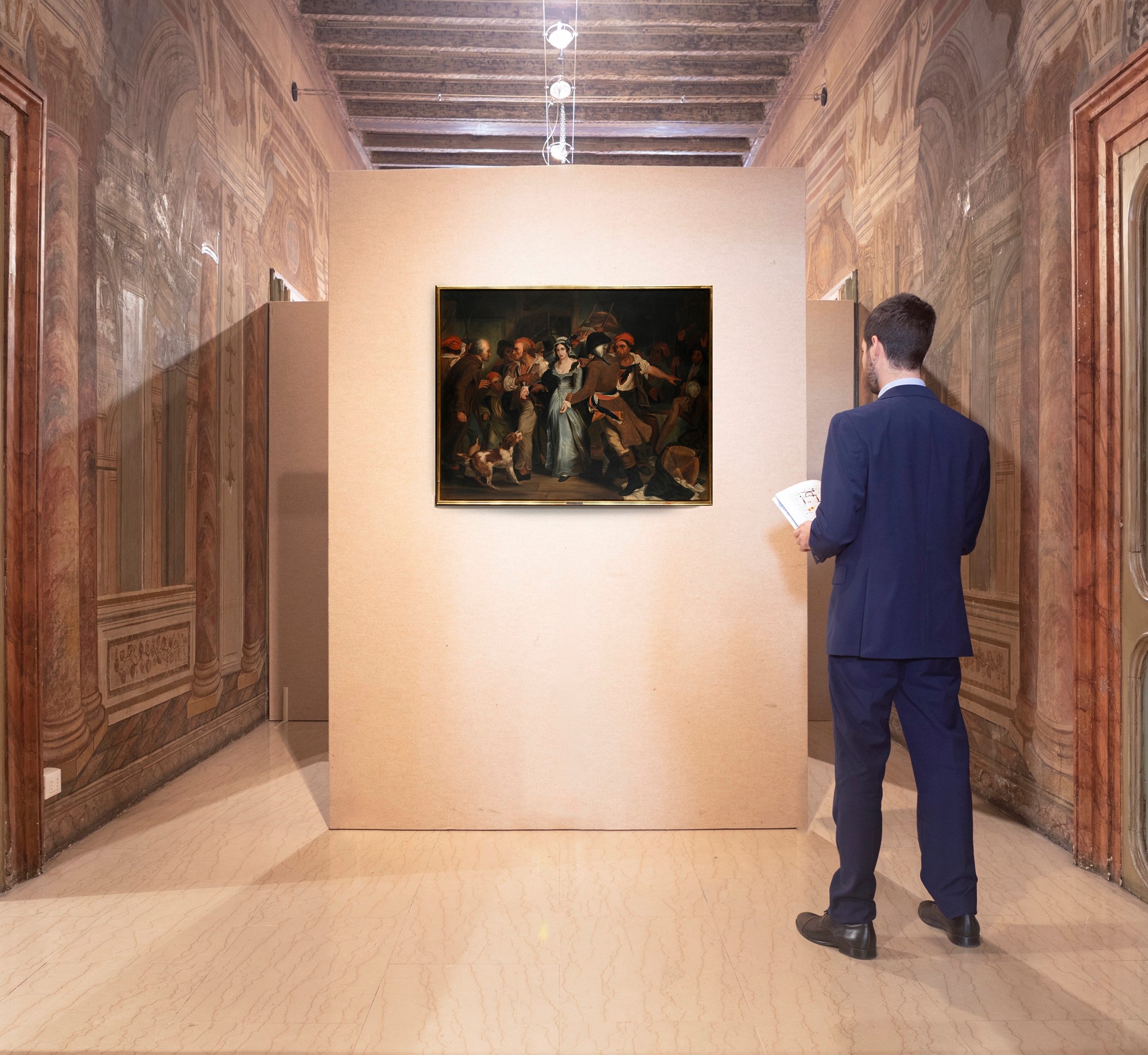 L'arresto di Charlotte Corday 1843 Olio su tela cm 89x112 - con cornice cm 92x115 L'arresto dell'assassina di Jean Paul Marat, l'amico del popolo, Charlotte Corday fu un'iconografia replicata varie volte dal pittore olandese Ary Scheffer. La prima versione fu dipinta nel 1830, quasi quarant'anni dopo l'omicidio, e fu acquisita dallo Stato francese ed esposta inizialmente al Palais du Luxembourg e successivamente al Salon del 1831. Oggi la tela è conservata nelle collezioni del Museo di Grenoble, dopo esser transita al Museo del Louvre e al Museo Lambinet di Versailles. La tematica della giovane girondina arrestata e condotta alla Conciergerie per essere giudicata del Tribunale rivoluzionario, ed in seguito condannata a morte, dovette essere assai in voga negli anni successivi alla Rivoluzione. Il nostro dipinto è da considerarsi autografo e databile al 1843.