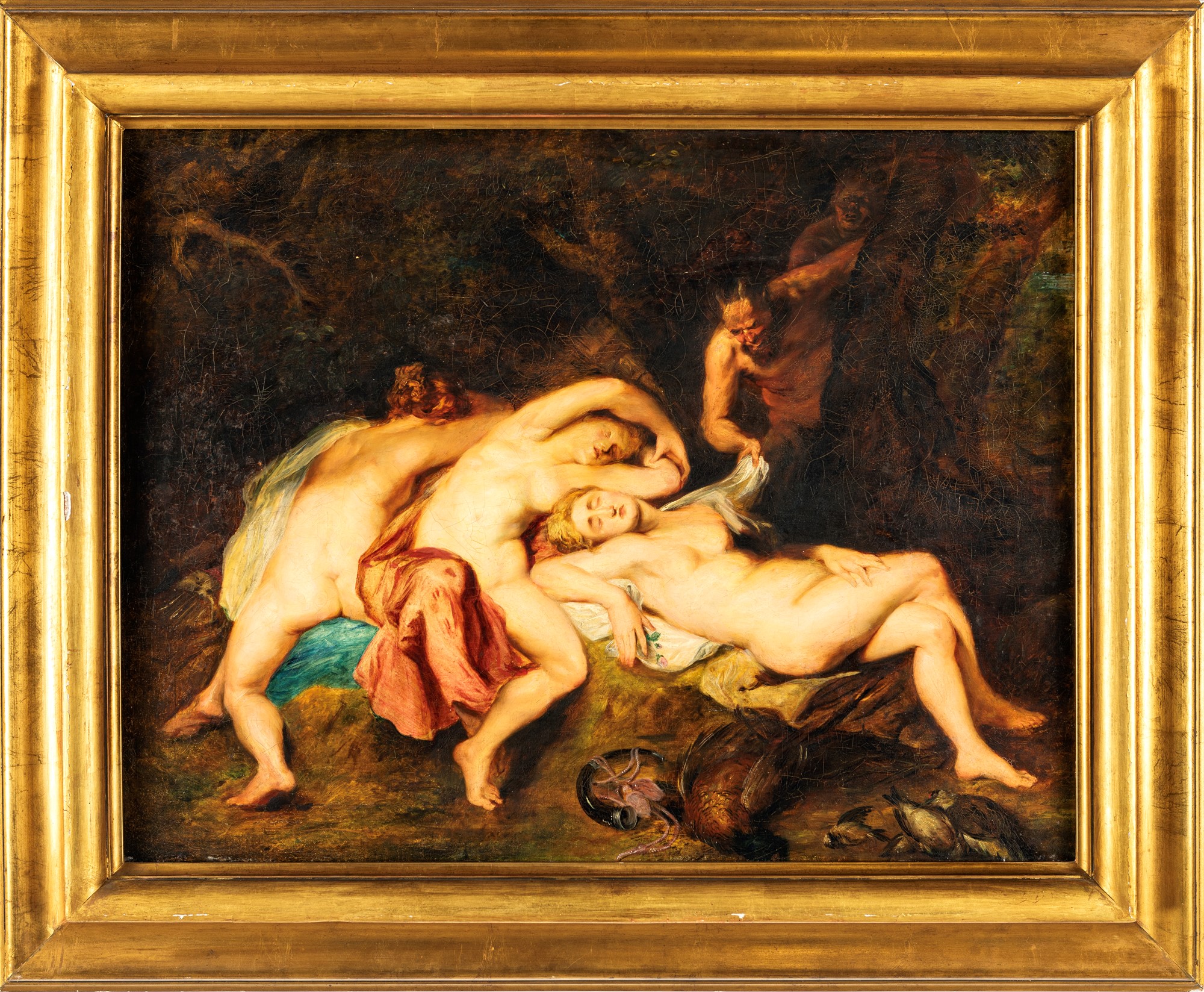 Pittore Fiammingo del XIX secolo Ninfe e Satiri Olio su tela cm 55x71 - con...