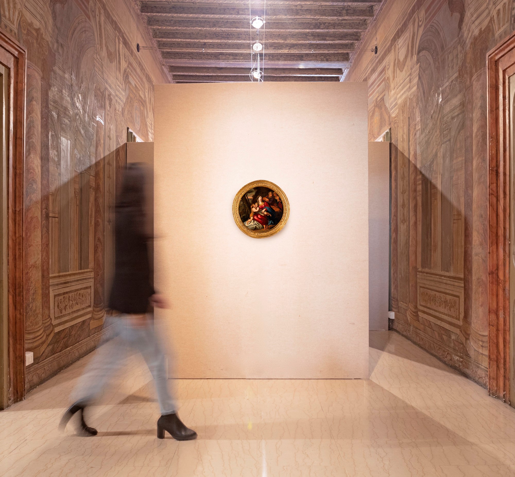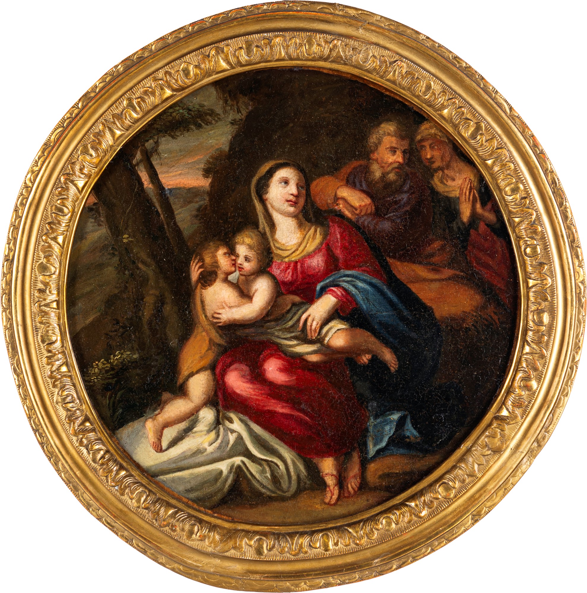 Scuola italiana del XVII secolo Sacra Famiglia olio su tela Diam. 39 cm - con...