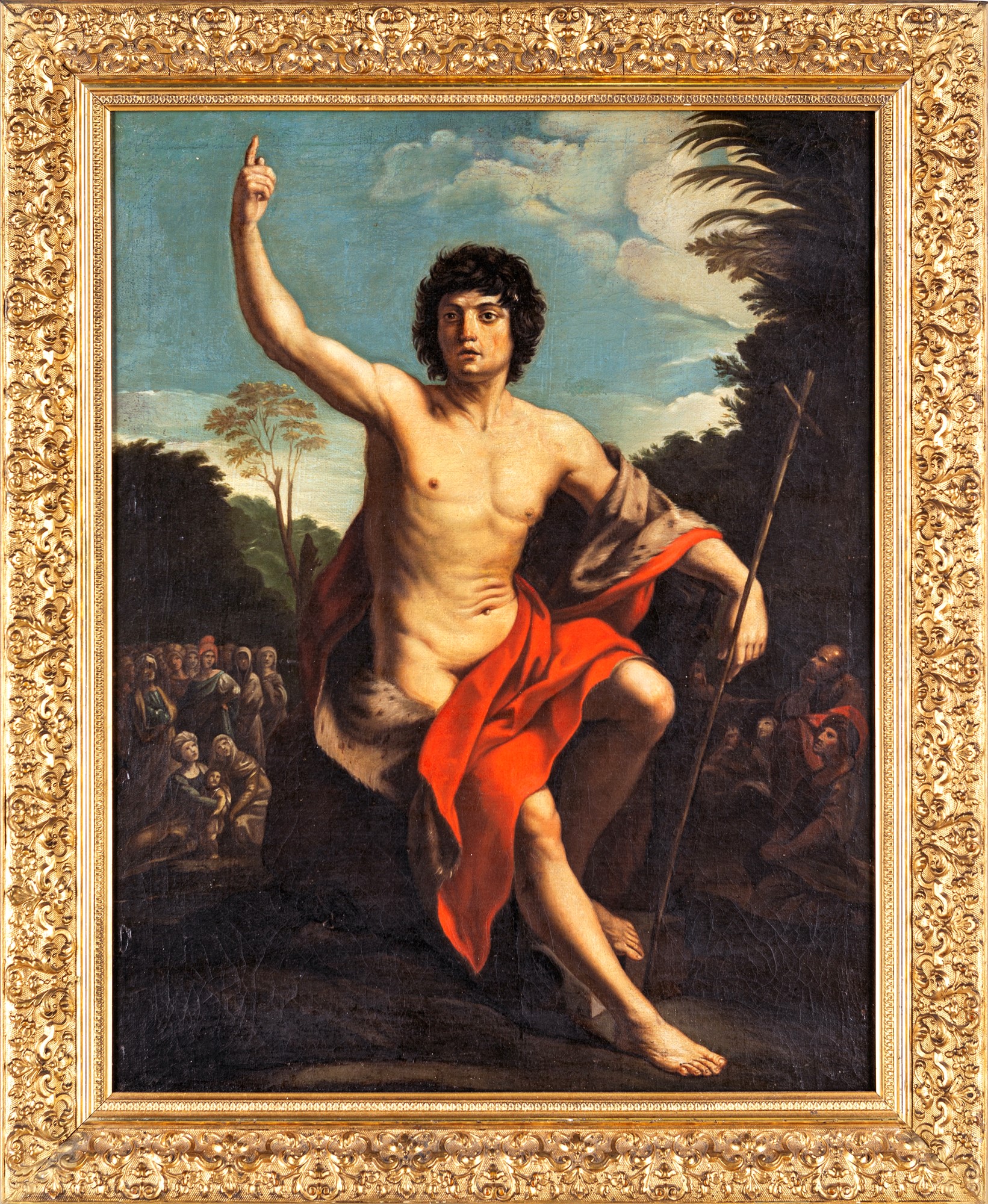Predica di San Giovanni Battista olio su tela cm 62x49 - con cornice cm 80x60 Il dipinto è una replica di buona qualità di un originale del pittore bolognese, maestro indiscusso del filone classicista del diciassettesimo secolo, Guido Reni conservato presso la Collezione L. Vitetti.