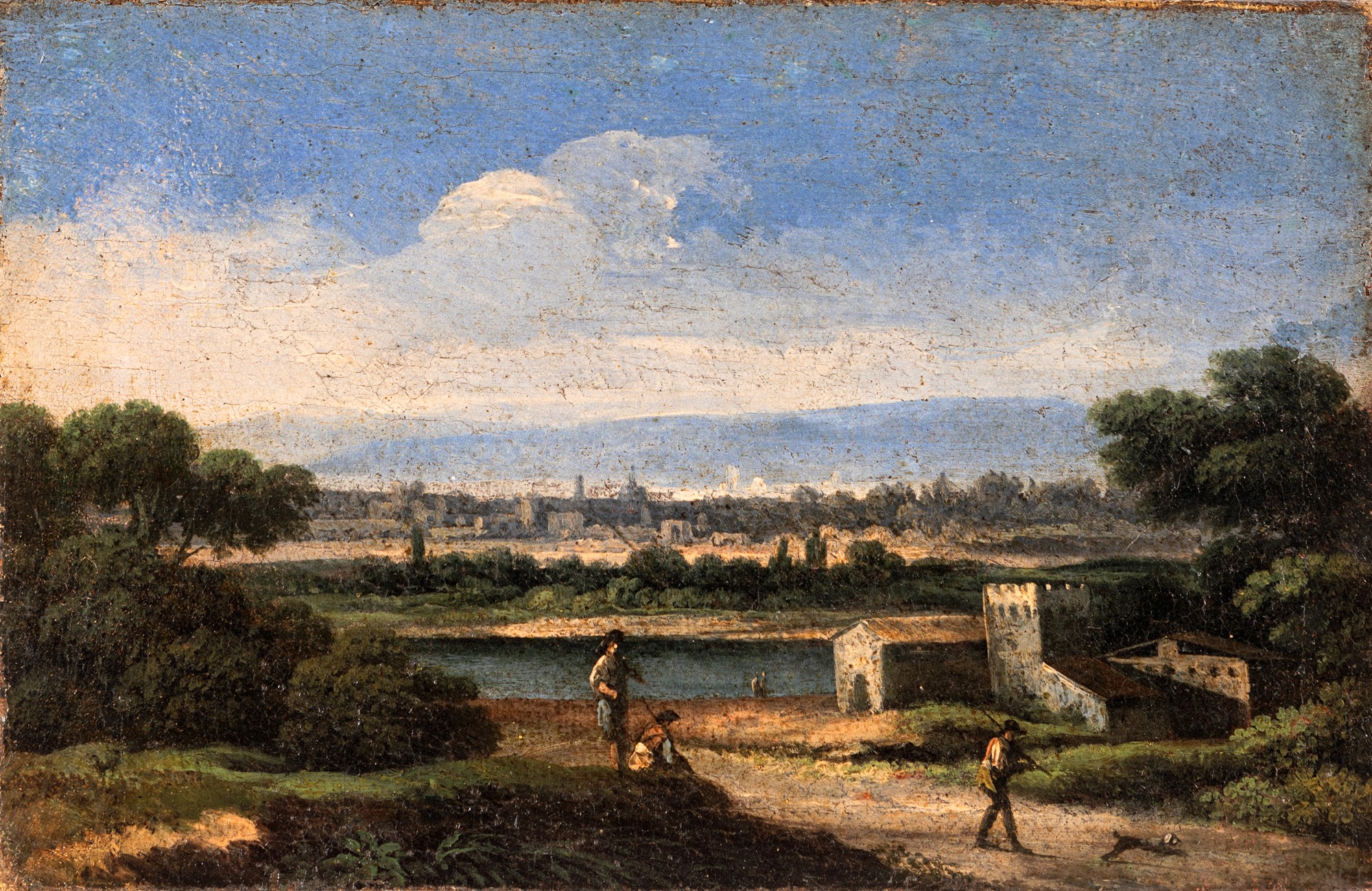 Scuola italiana del XVIII secolo Veduta di Firenze olio su tela cm 21x32