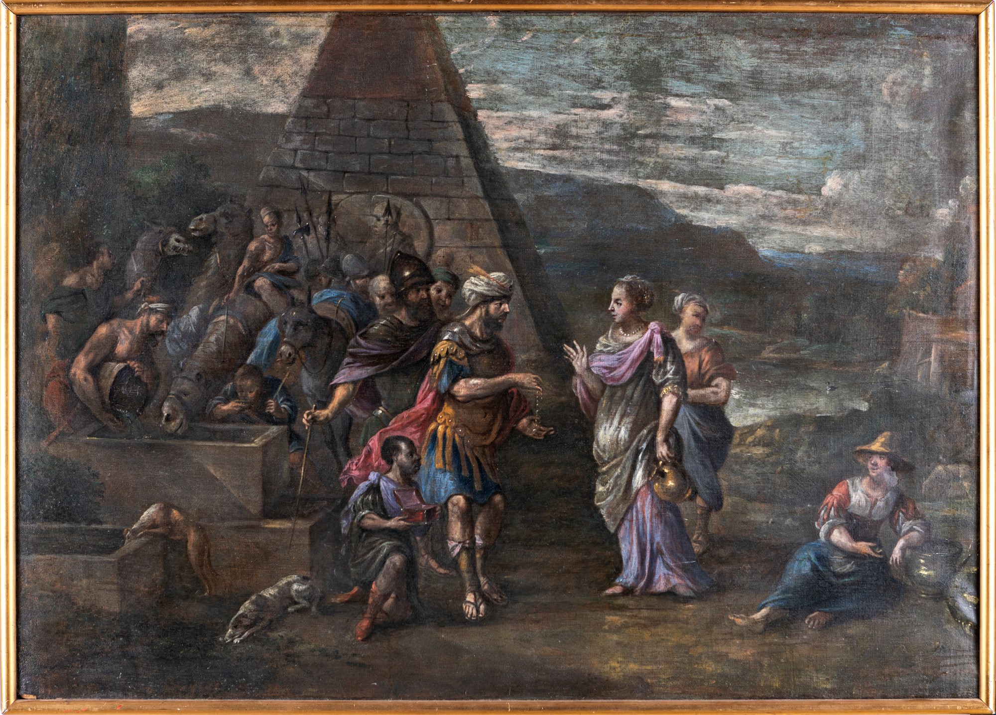 Scuola Fiamminga del XVII secolo Rebecca al pozzo olio su tela cm 95x130 -...