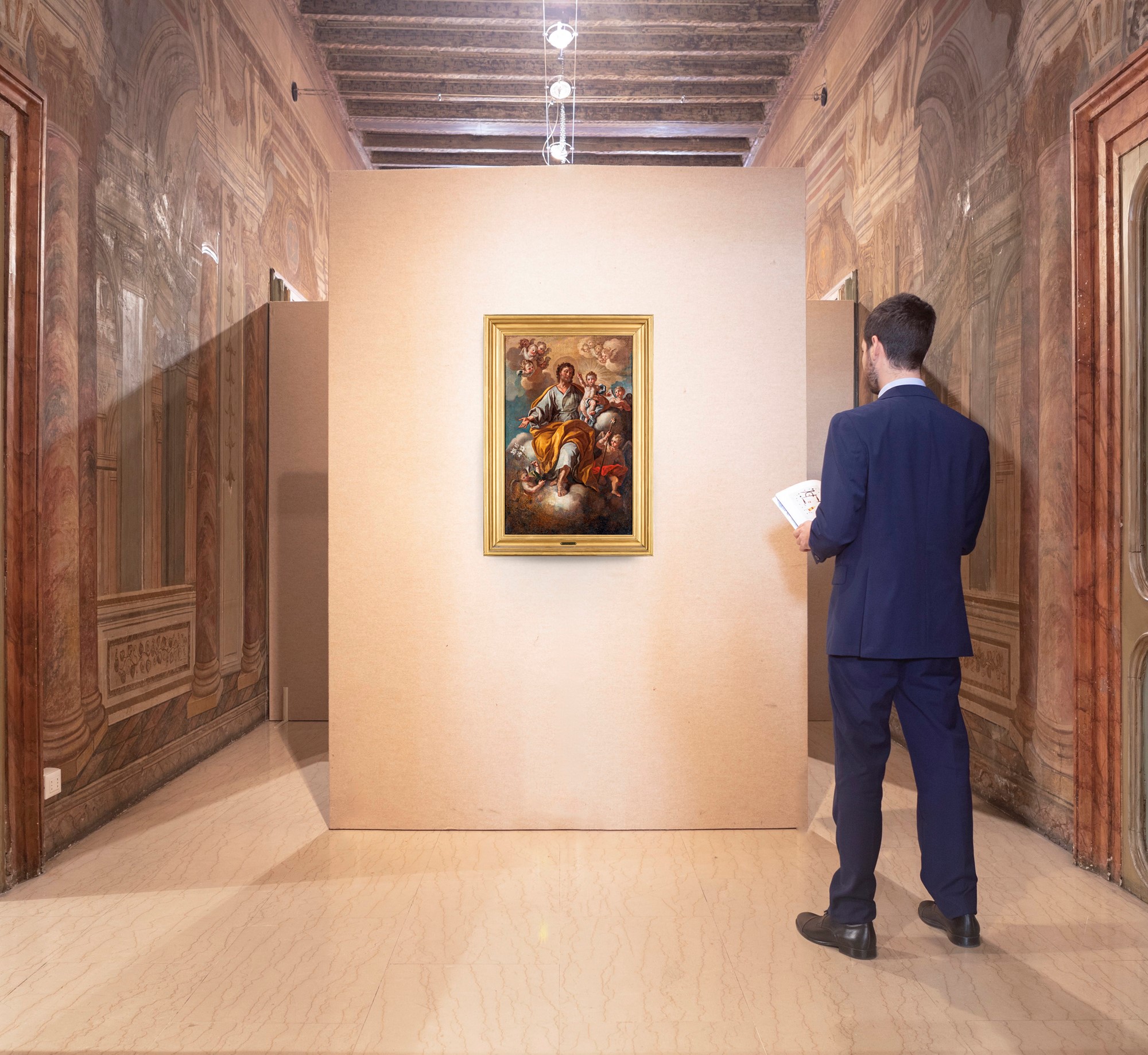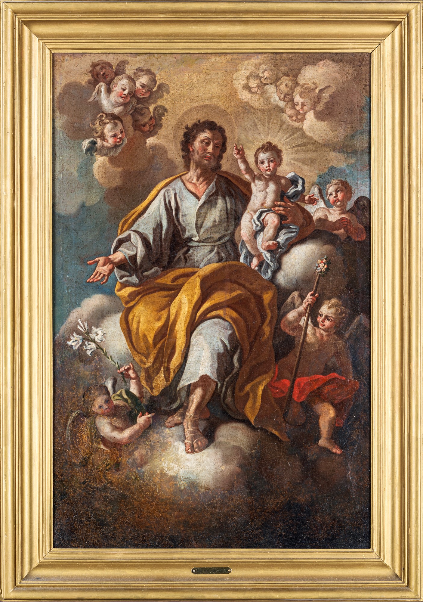 Scuola napoletana del XVIII secolo San Giuseppe con Bambin Gesù olio su tela...