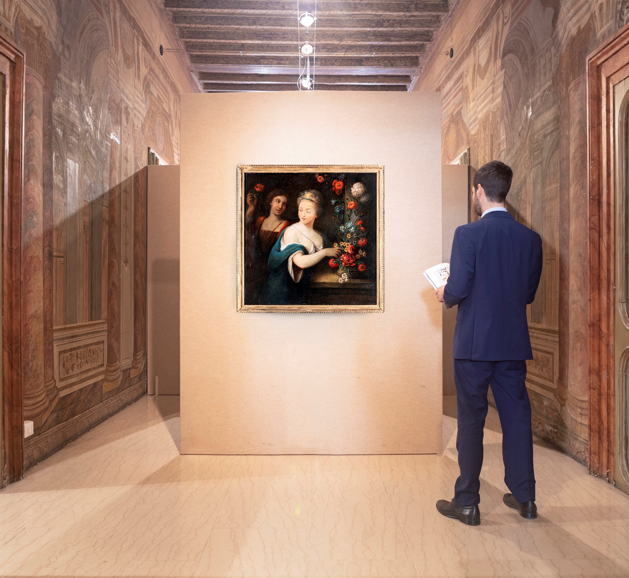 Lot 351 | Scuola francese del XVIII secolo Allegoria dell'olfatto olio su tela cm 95x95...