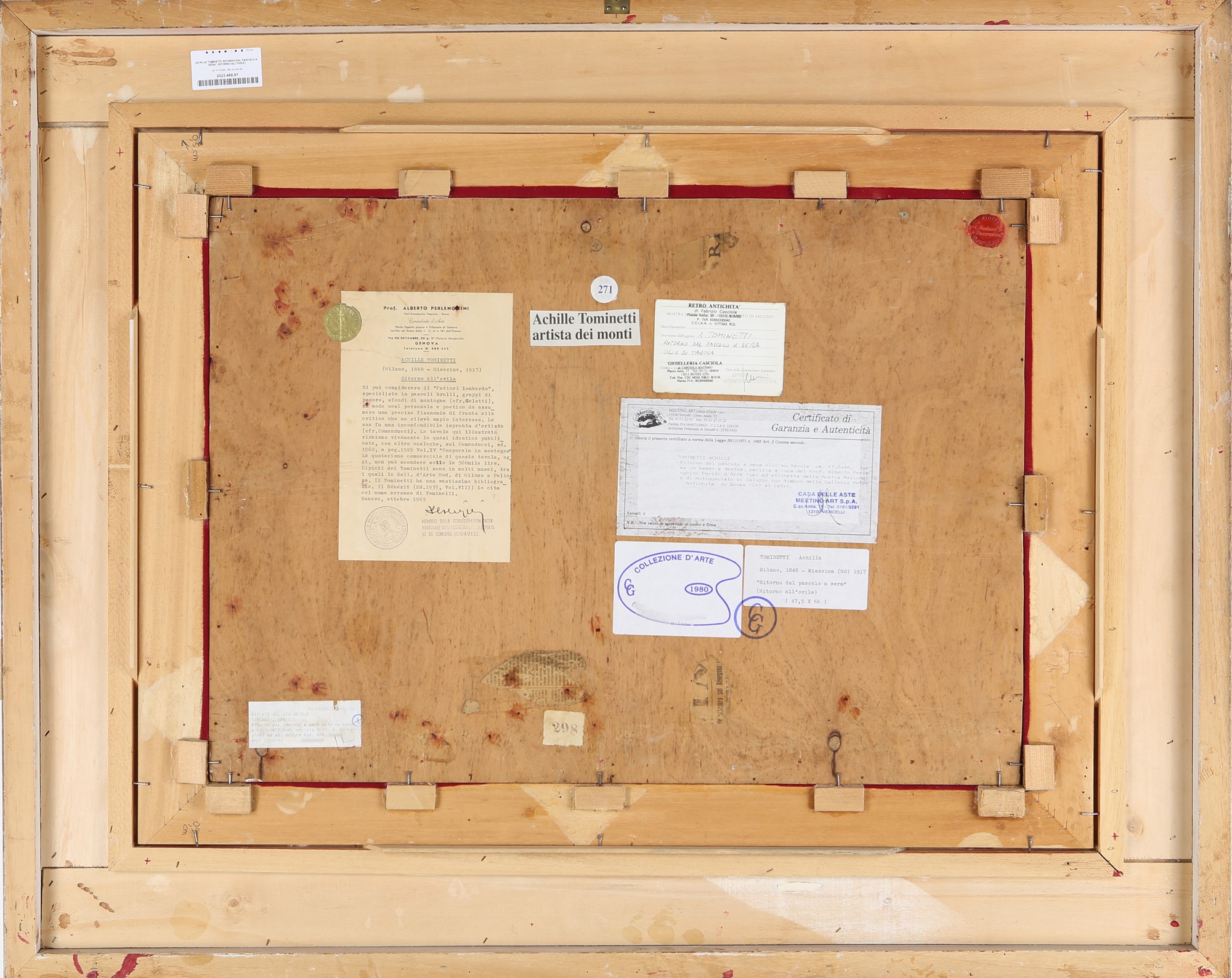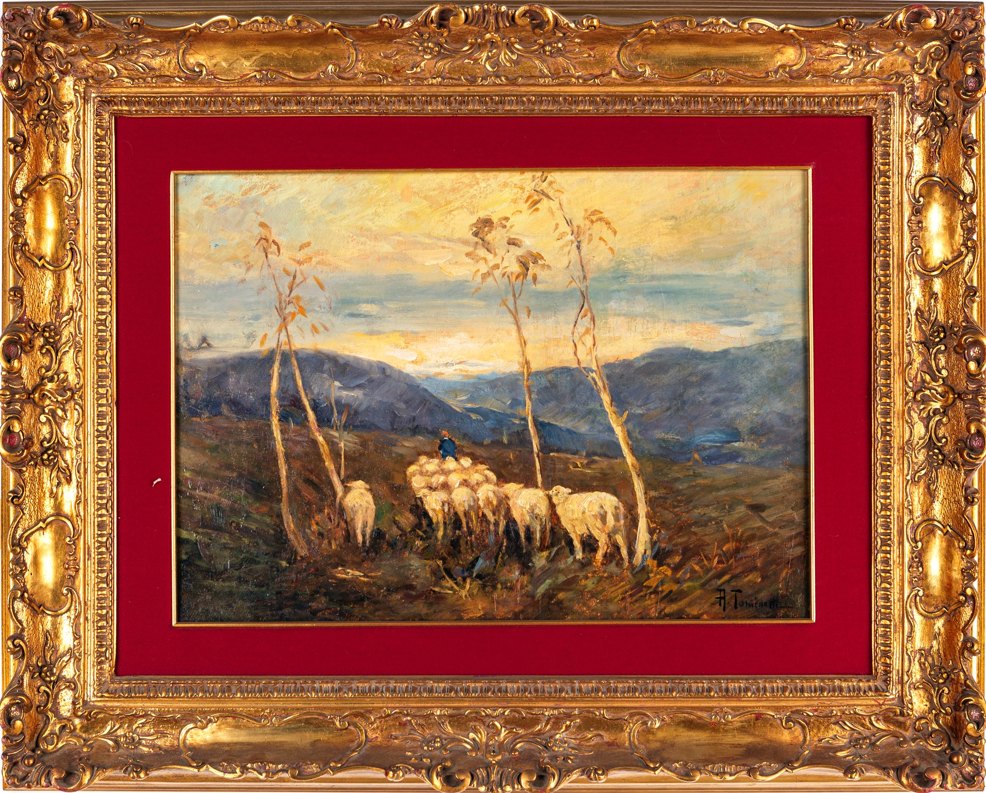 Ritorno dal pascolo a sera (Ritorno All'ovile) olio su tavola cm 47.5x66 - in cornice cm 80x100 Firmato in basso a destra "A. Tominetti"