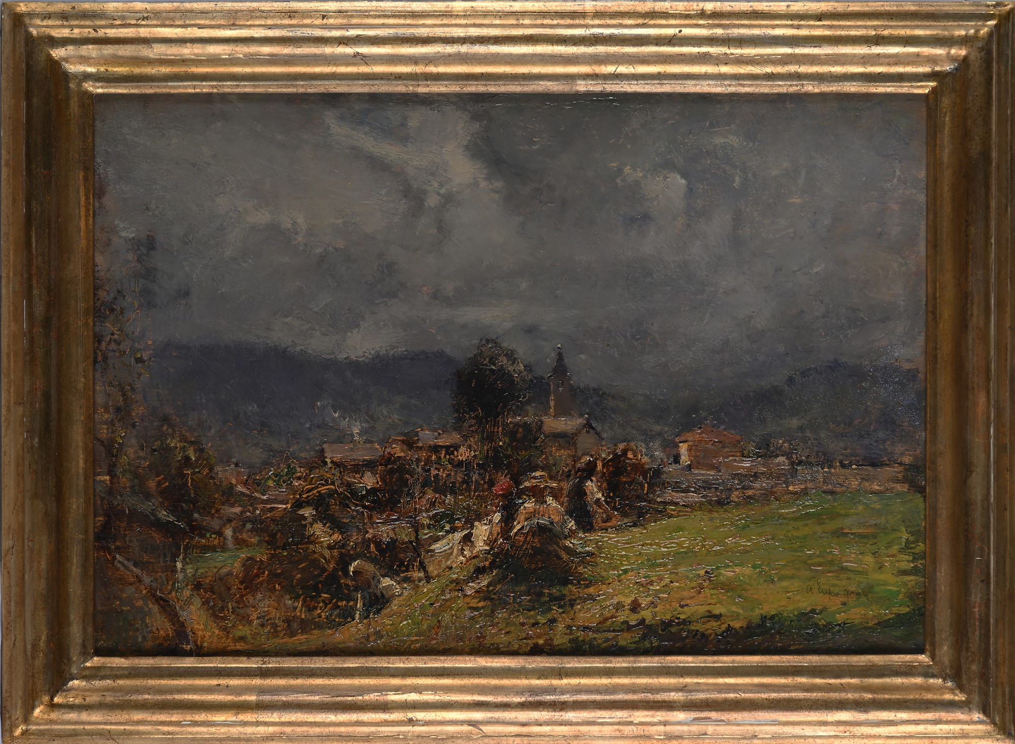 Riposo nei campi 1908 olio su tavola cm 33x48 - in cornice cm 41x58,5 Firmato e datato in basso a sinistra "A. Lupo 1908"