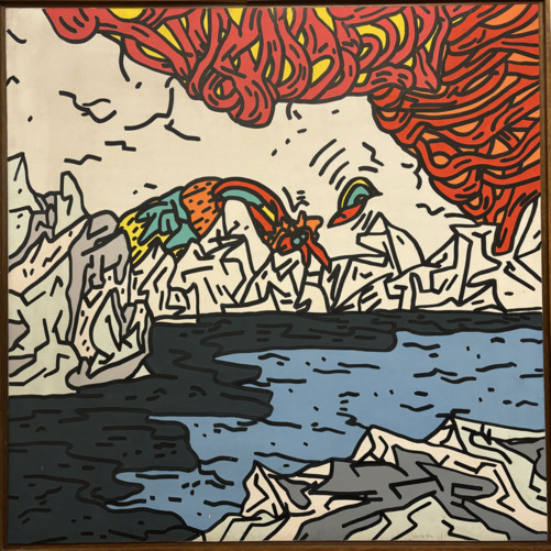 ARTISTA SCONOSCIUTO - Iceberg e cose 1980 Tecnica mista su tela...