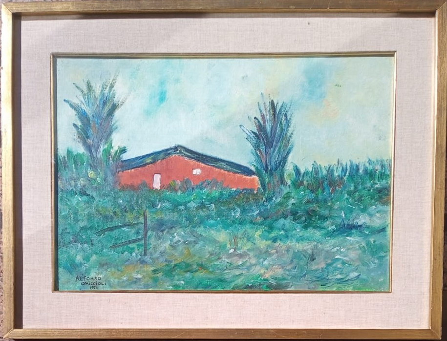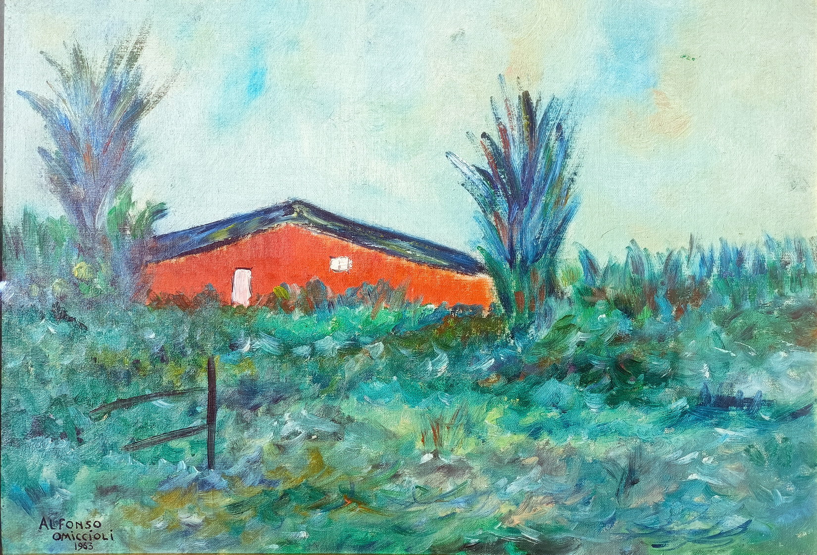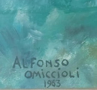 OMICCIOLI ALFONSO Roma (RM) 1921 Veduta 1963 Olio su cartone telato...