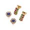 Lotto composto da due paia di orecchini in oro giallo 18 Kt di cui uno con zaffiri ovali e diamanti mezza rosetta l'altro con diamanti rotondi, smeraldi e rubini carrè