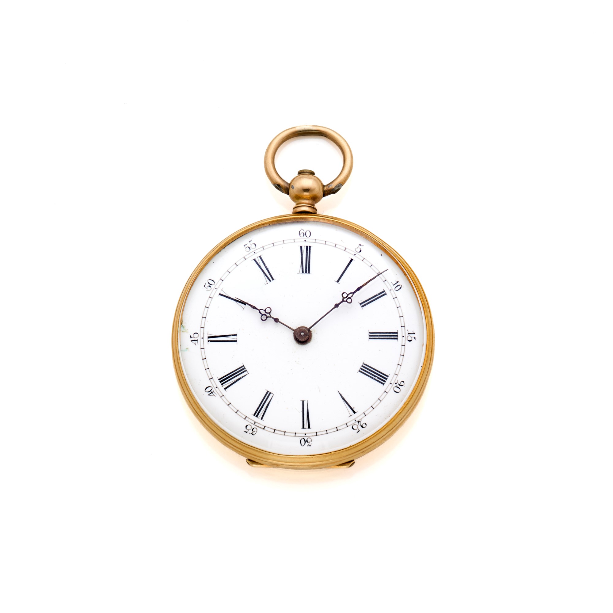 Orologio da tasca. Cassa in oro giallo 18 Kt. Movimento carica manuale a chiavetta. Discrete condizioni generali. Cassa 35 mm