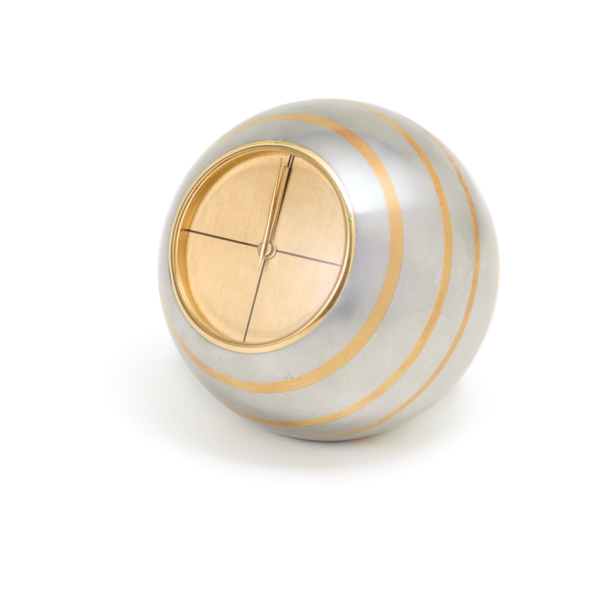 Orologio fermacarte firmato Faraone Gio Caroli in acciaio. Movimento a quarzo