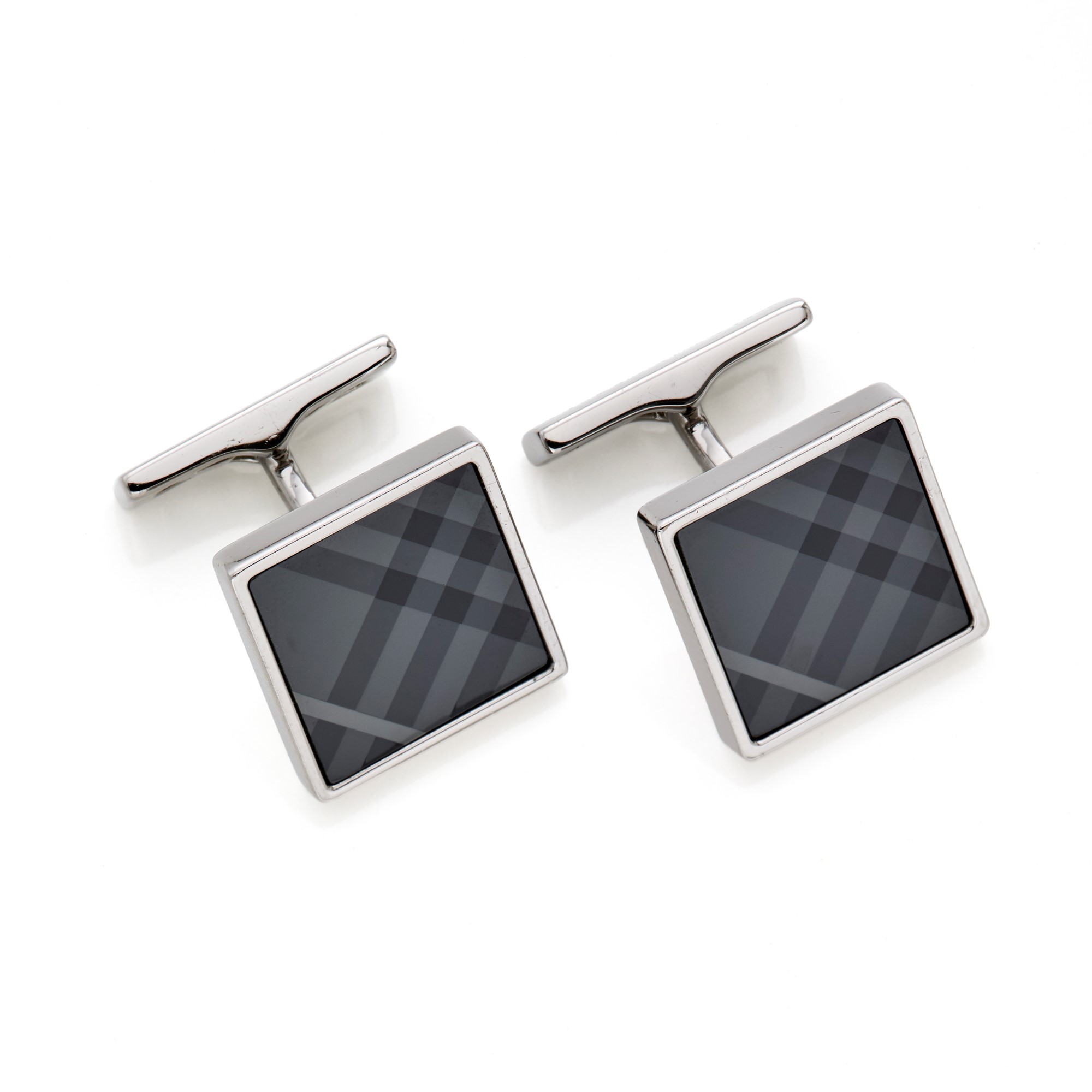 Gemelli Burberry in metallo argento con iconico motivo della Maison sui toni del grigio.