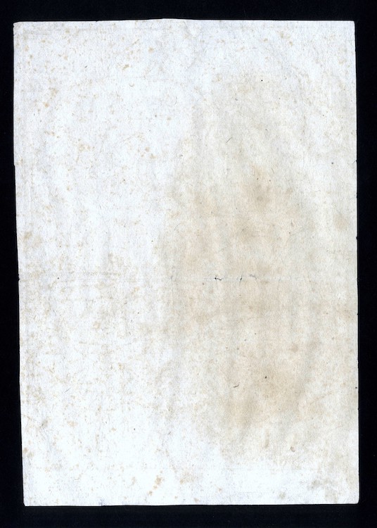 Esemplare stampato su leggera crata vergata, rifilato; leggera traccia di ossidazione centrale, e piccoli fori, visibili al verso.