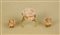Lotto composto da un anello e una coppia di orecchini in oro giallo e rosa con corallo rosa. XX secolo.