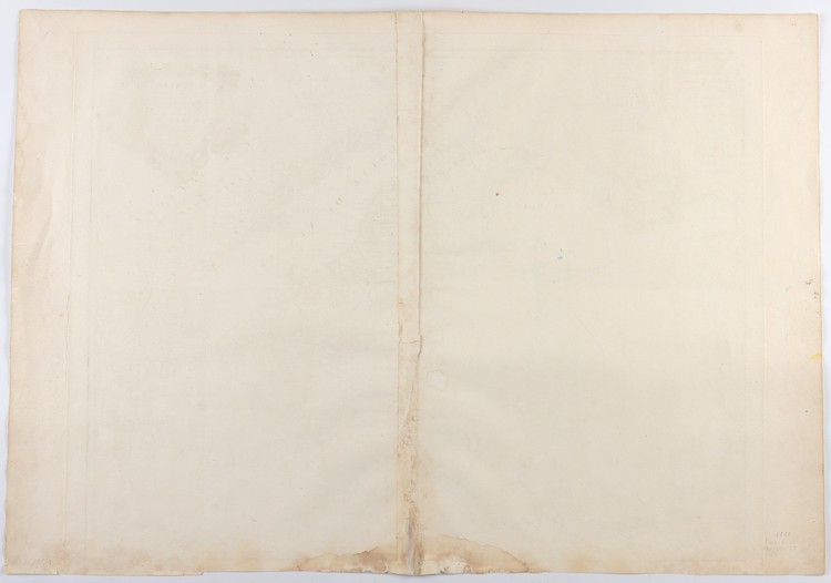Stato di conservazione molto buono salvo una macchia in basso al centro e delle piccole mancanze sul bordo inferiore rinforzata la verso. Un strappo sul margine destro.
