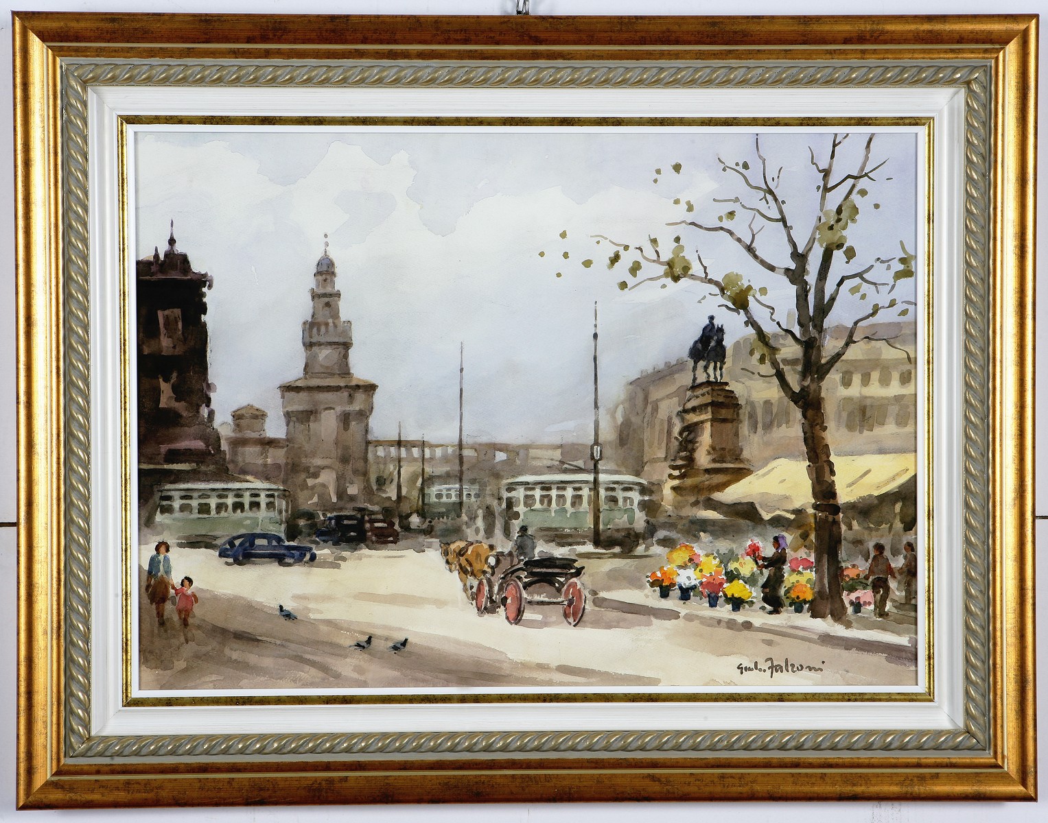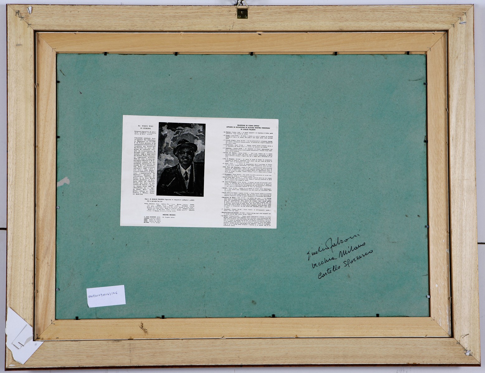 Firma in basso a destra. Al retro firma e titolo. Autentica su fotografia della Galleria Pedrani. Cornice presente.