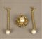 Lotto composto da una spilla-scultura in oro giallo e perla australiana coltivata da 15 mm circondata da piccoli personaggi in oro giallo 18 kt, gr. 18 e una coppia di orecchini in oro, diamanti e perle. La spilla proviene dalla collezione di Marta Marzotto, con certificato.