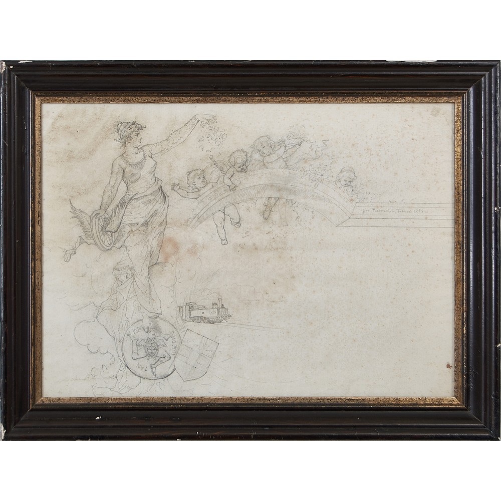 PITTORE XIX SECOLO, Scena allegorica celebrativa, Disegno