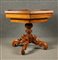 Tavolino in legno di noce, piano esagonale con cassetti e sotto cassetti, gamba tornita su quattro piedi sagomati e intagliati. Veneto. XIX secolo. Mis. Lung. cm. 92 Alt. cm. 73 Prof. cm. 92 ca.