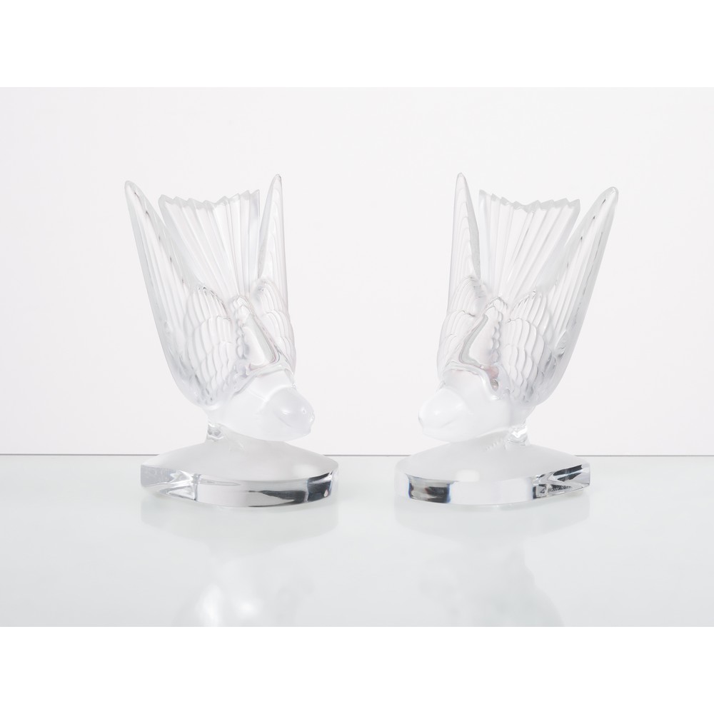 Coppia di fermalibri in cristallo raffiguranti "Volatili".