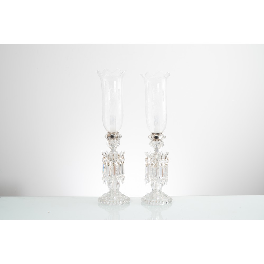 Coppia di lumi ad una fiamma in cristallo inciso.