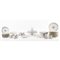 Parte di servizio di piatti in porcellana bianca con decori composto da: zuppiera, insalatiera, alzata, salsiera, 2 raviere, 6 tazze da caffè con piattini, 14 piatti piani, 10 piatti frutta (rotture nella salsiera, 10 piatti piani e 2 piatti frutta sbeccature).